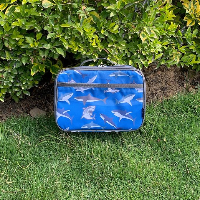 FlowFly Kids Lunch box Insulated Soft Bag Mini Cooler Back to School Thermal Meal Tote Kit for Girls, Boys, Shark