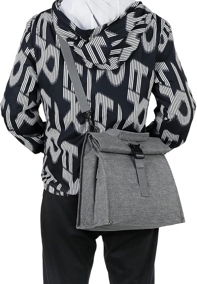 Insulated Lunch Bag for Men/Women/Kids, Roll top Reusable Lunch Box with Adjustable Shoulder Strap, Thermal Lunch Cooler Tote Container for Adults/Teens School Work Office Picnic,Grey