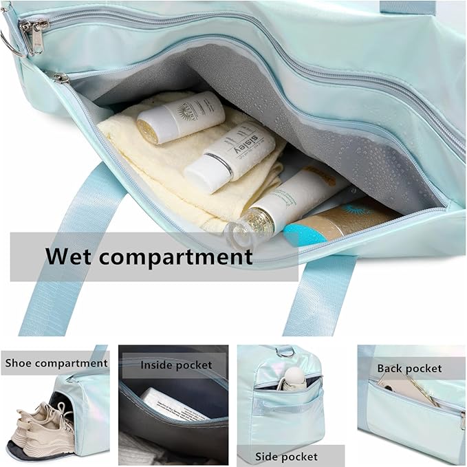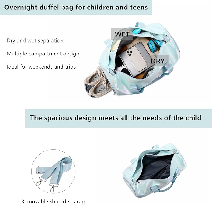 • Dry Wet Separate Pockets:This Kids Weekender Bag Delivers Spaci Ous Storage With 1 Large Main Zippered Compartment For Dry & Clean Clothes Or Everything For Gym & Traveling, You Necessary, And 1 Large Waterproof Pvc Pocket With Zipper, For Wet Items. Additional Storage Pockets To Organize Your Items And Gym Accessories.