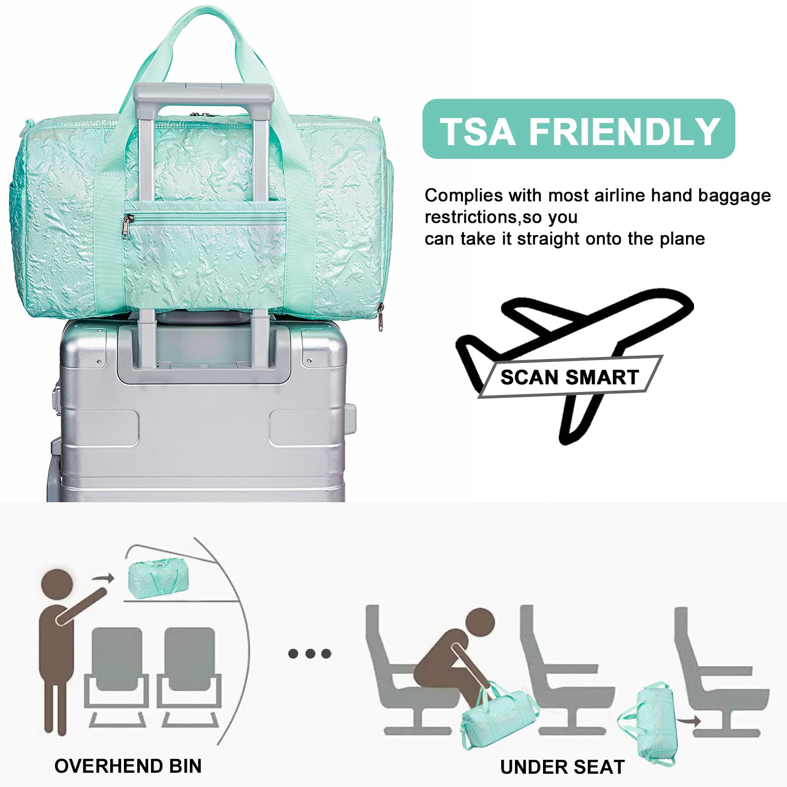 - Back side sleeve allows you to slide it over rolling suitcase, and the zipper bag can hold earphones, mobile phones, charging cables, etc perfect suit for used as a weekend travel bag.