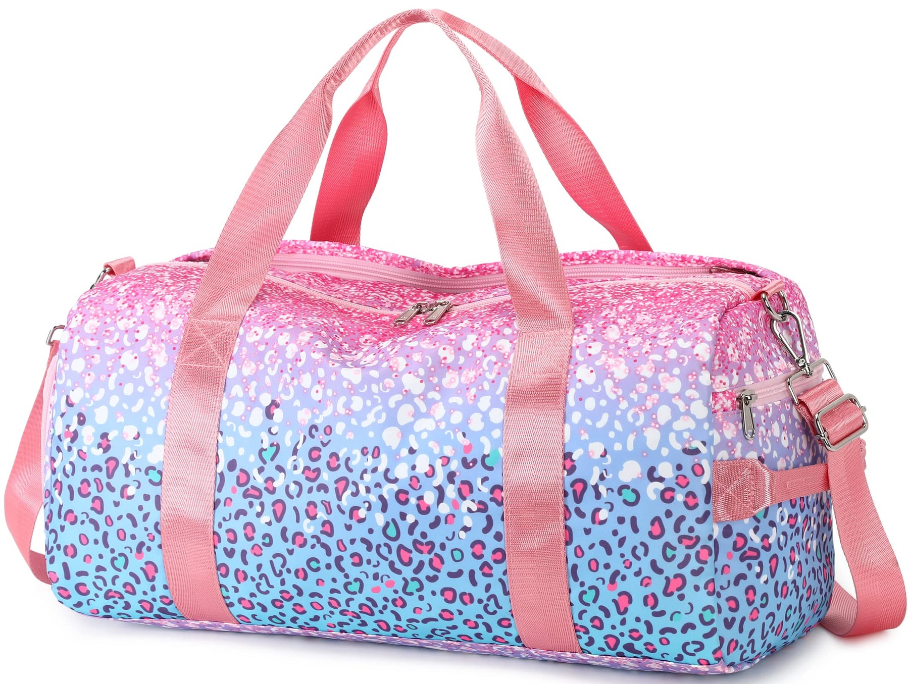 - The girl's dance bag with shoe compartment can not only store sneakers and dirty clothes separately, but the plastic wet bag can also store swimsuits, wet towels or toiletries.