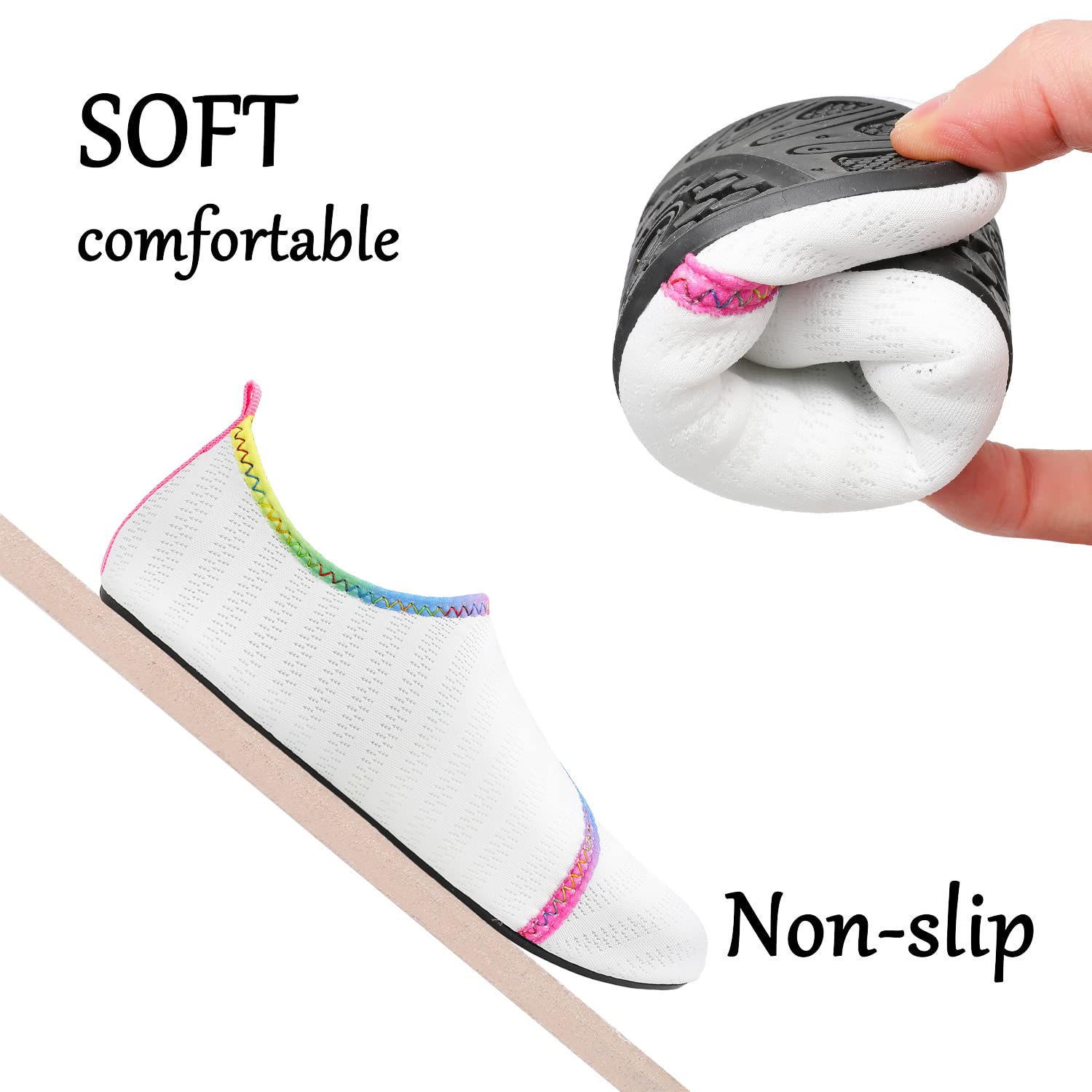 - LIGHTWEIGHT&COMFORTABLE:these toddlers kids aqua sock shoes are super lightweight and flexible just like socks,providing great freedom and comfortable feeling for your kids when thay are outdoor water sports.