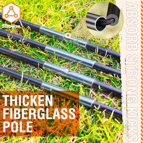 - QUALITY ABOVE All ELSE: we have heard there are so many customers complaints about the ripped net and flimsy frame poles. So we specifically choose our material - durable Dacron material for the soccer net, twice thicker and stronger than all of goal nets available in the market; Improved fiberglass goal poles is only a fourth of weight of steel while still offering the same strength, and after complex technological process of production, it acquires properties that stronger than steel metal