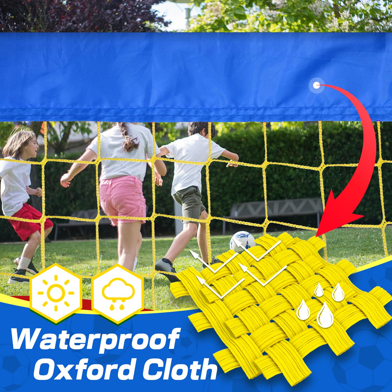 - INNOVATIVE COLORED SOCCER GOAL DESIGN: Our this soccer net has attracted wide attention with the unique colored design. Blue, Yellow & Red color design helps distinguish the soccer goal during team matches, enabling athletes to clearly identify the soccer goal's position, as well as the attacking and defending directions. We are honored to collaborate with over 1,000 domestic soccer training institutions and sponsor soccer goals for kid and youth sports training centers