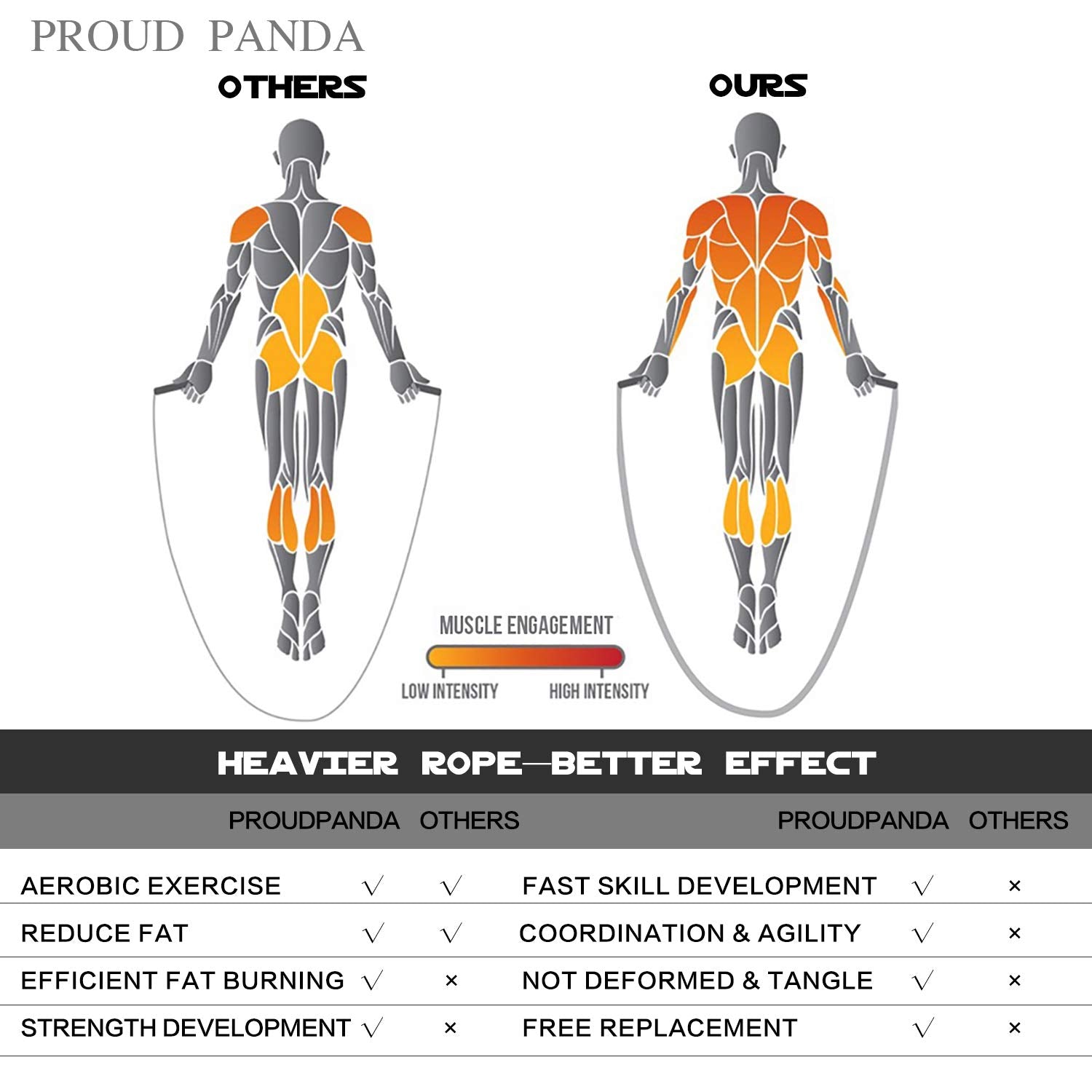 - 【PERFECT FOR SPORTS FITNESS】 Our exercise weighted skipping rope can train your stamina and speed, while improving the muscle intensity of your whole body, and building muscle definition and burning fat. This weighted jump rope is Great for Fitness Workouts, Cross fit, training, Jumping Exercise, Skipping, MMA, Boxing, Gym, Speed training, Calves, thigh and forearm strengthening, leg training and endurance training