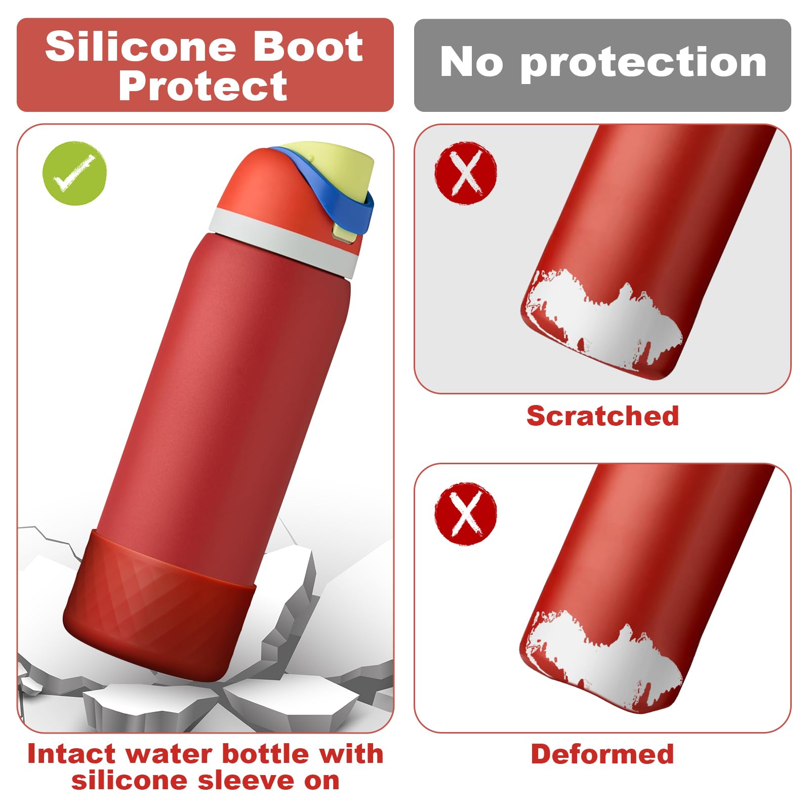 • 【Excellent Protection】Still worried about broken, scratched bottoms of your favorite water bottles? Or embarrassed by the clinking sound the bottle makes on the table? This silicone sleeve for Owala can effectively protect the bottom of the bottle from depression, scratch, skid resistance and noise.