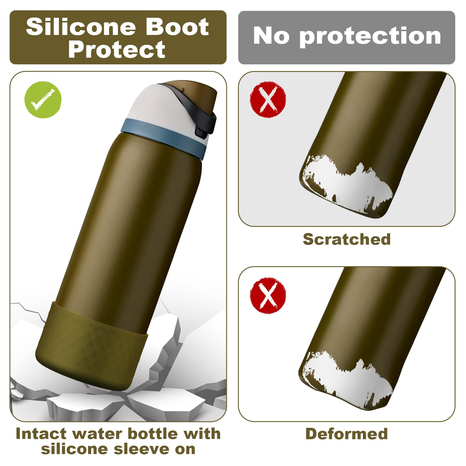 • 【Perfect Compatiblity】The silicone boot is suitable for Owala 40oz FreeSip, Twist, and Flip stainless steel water bottles. It is precisely made according to the size of the original cups, which perfectly fits the cup bottom and won't fall off easily.