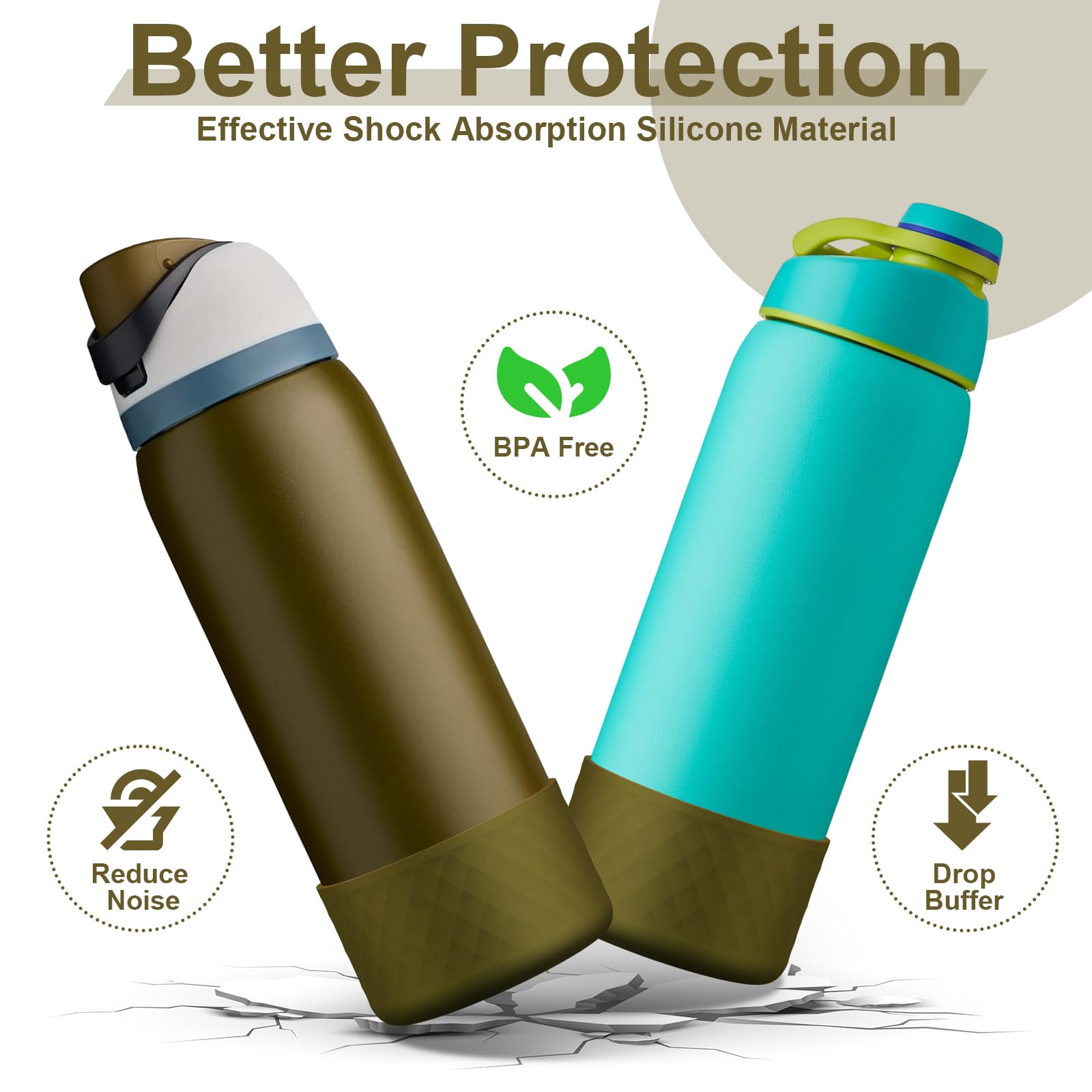Alwenid 2PCS Silicone Water Bottle Boot for Owala 40 Oz, Anti-Slip Protective Sleeve Bottom Bumper Protector for FreeSip, Twist, and Flip Stainless Steel Water Bottles (Brown Green)