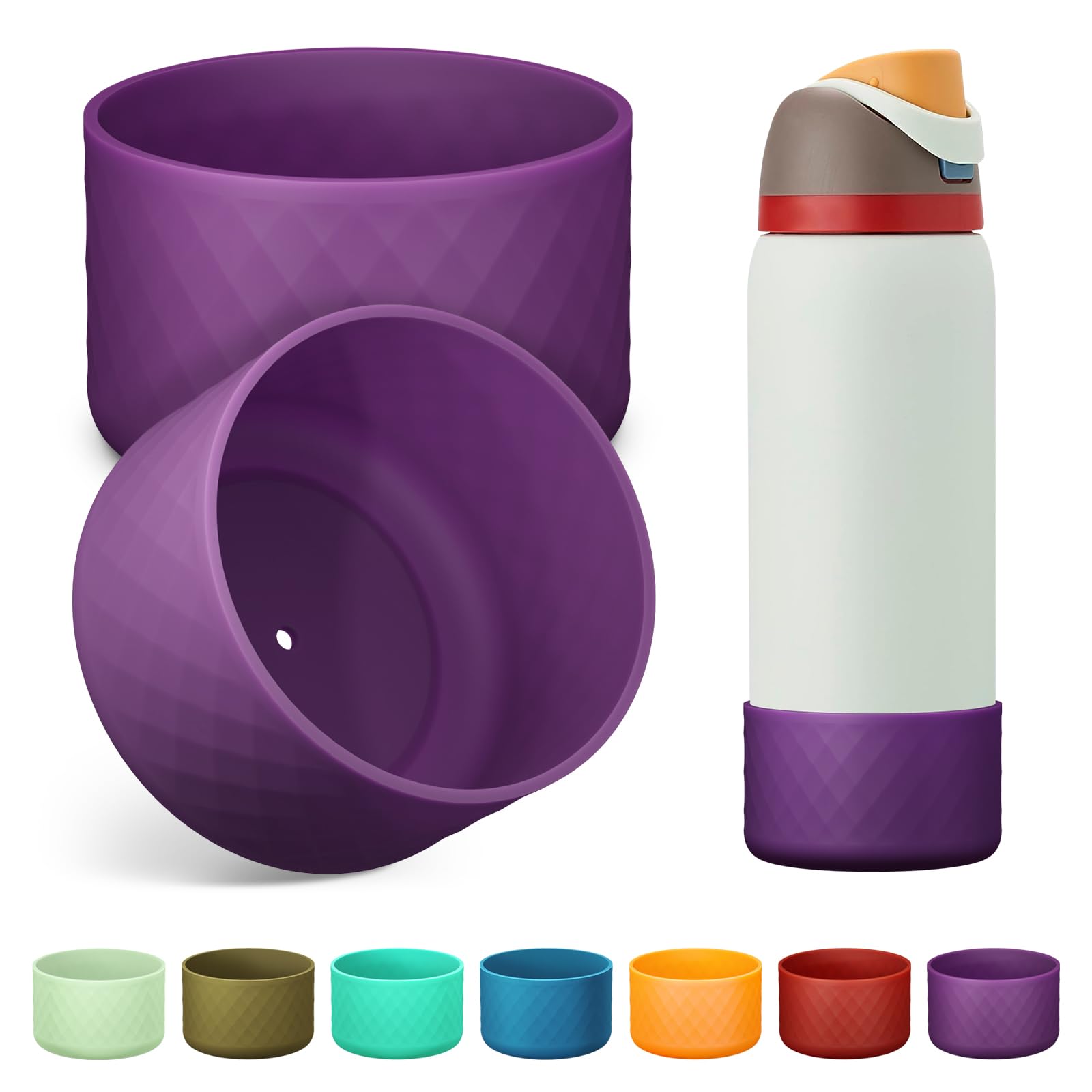 Alwenid 2PCS Silicone Water Bottle Boot for Owala 40 Oz, Anti-Slip Protective Sleeve Bottom Bumper Protector for FreeSip, Twist, and Flip Stainless Steel Water Bottles (Dark Purple)
