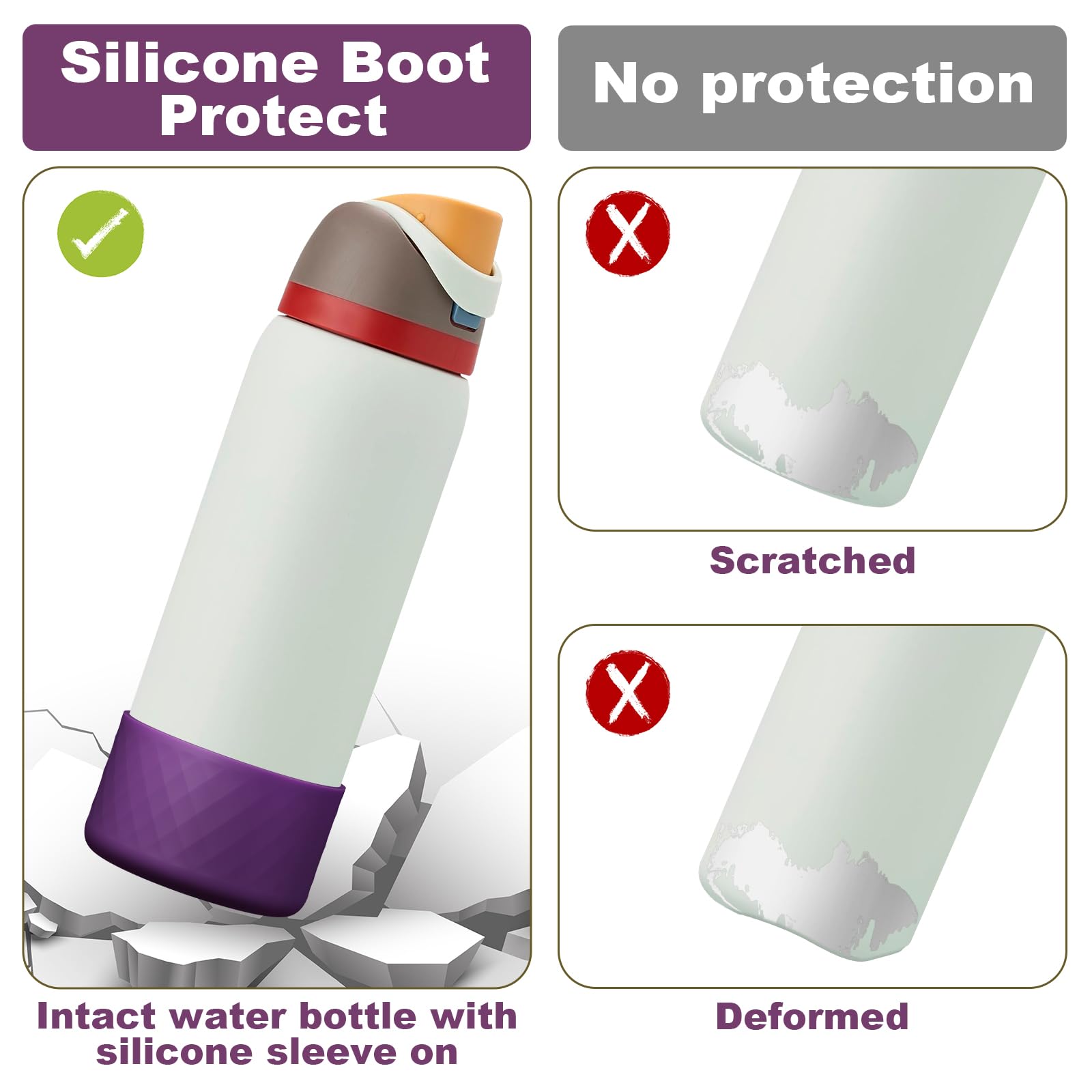 • 【Excellent Protection】Still worried about broken, scratched bottoms of your favorite water bottles? Or embarrassed by the clinking sound the bottle makes on the table? This silicone sleeve for Owala can effectively protect the bottom of the bottle from depression, scratch, skid resistance and noise.