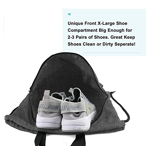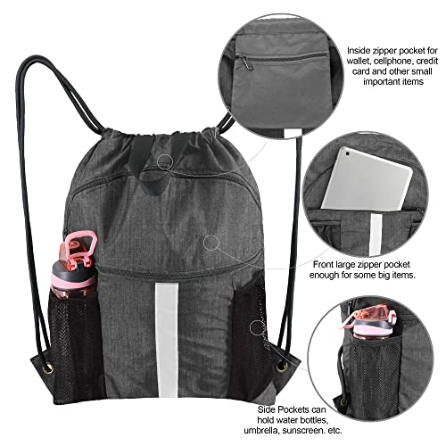 • Convenient Multi Pockets: The big shoe compartment in front of draw string sport bag can hold two pairs of shoes; the smaller zipper front pocket is perfect for keeping an ipad, towel, and other items, besides, two sides mesh bags allow you to place a water bottle, umbrella easily. Inside of cinch bag, the zipper pocket can hold small valuables such as wallet, cellphone, keys and so on. Multiple Pockets help you to keep things to be placed by category, easy to be found.