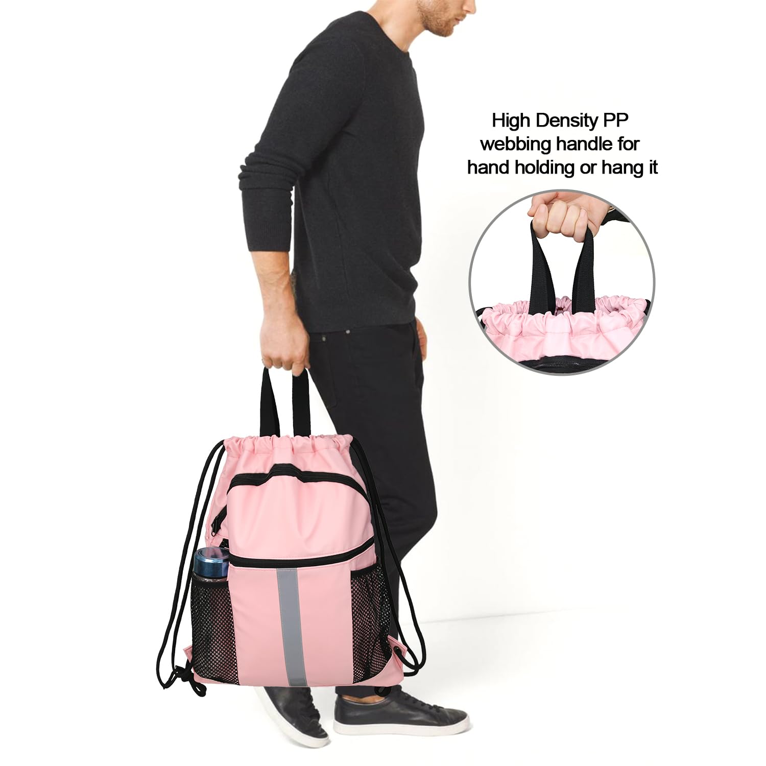 Enhanced Durability: Made out of durable, lightweight nylon material, the drawstring backpack sack bag can help fitness addicts to carry heavy loads of personal items. The sport gym tote bag is desired for all seam are reinforced with webbing, which lets them SUPER durable and withstands daily wear and tear.