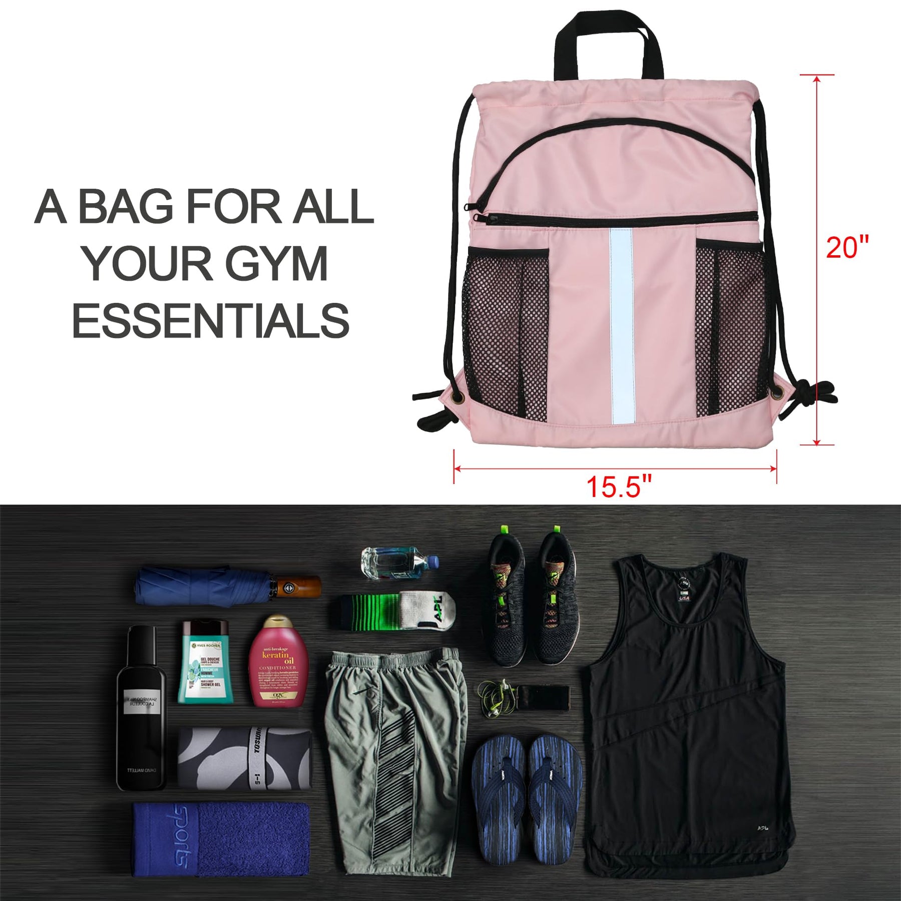 Large Capacity: The draw string sack pack measures 15.5x20 inches, large enough to organize your sport equipment, gym clothes, towels, hats, glasses, sports gears, lunch, or snacks. It's perfect for gym, sport, yoga, dance, travel, carry-on, luggage, camping, hiking, team work, training and more!