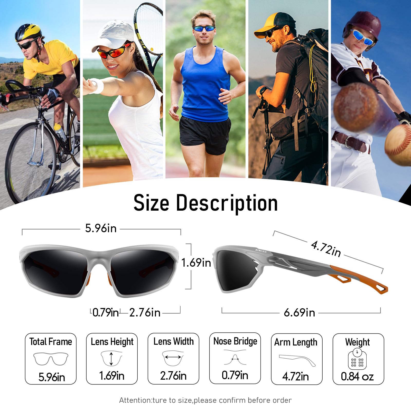 - Ideal for Outdoors: Bircen apply the soft rubber material to nosed pad and the tip of the temple, which makes the polarized sport sunglasses are flexible and non-slip, can be adjusted to fit large and small faces and heads,ensure a comfortable wearing experience.make it popular on many outdoor activities like baseball biking running fishing golf and hunting.