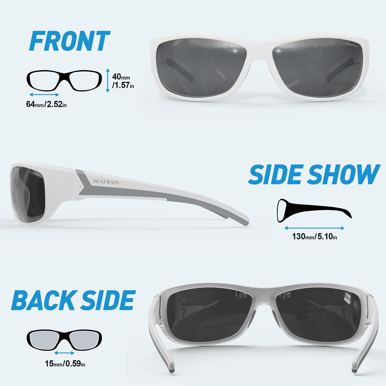 - EXCELLENT HD POLARIZED LENS- 1.0mm Polarized Tac Scratch-Resistant Lenses –100% Full Spectrum UV protection against the sun's harmful rays. DEAFRAIN Polarized Lens delivers high contrast, crisp definition, and peak visual acuity. Not only perfect for your weekend adventures, but also an excellent choice for your weekday commute.