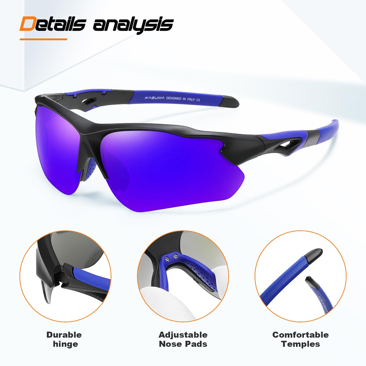 FAGUMA Polarized Sports Sunglasses for Men Women Fishing Cycling Running Golf Motorcycle TR90 Frame UV400