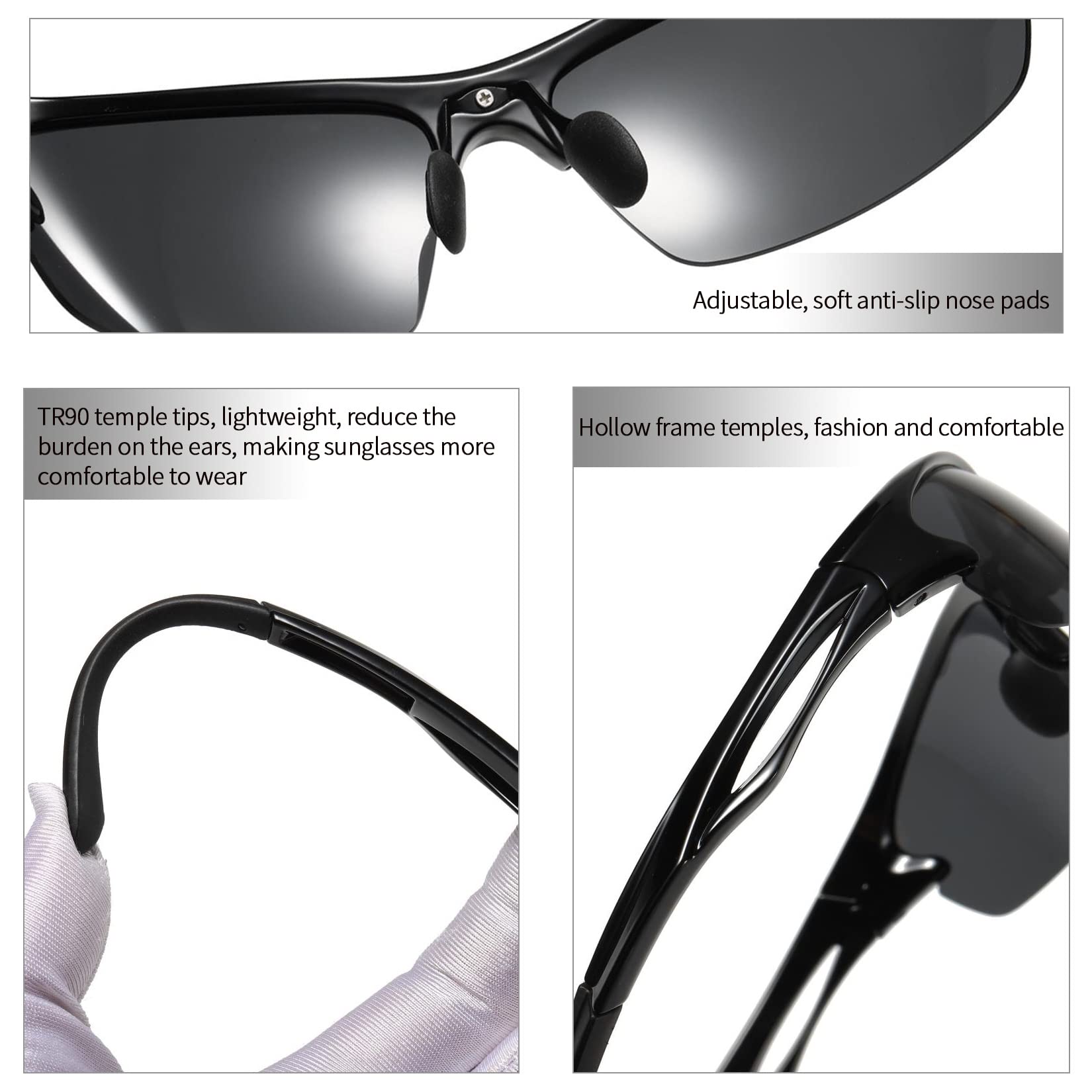 - LIGHTWEIGHT AND COMFORTABLE: Due to the premium resin materials, Joopin work sunglasses are lightweight, which can make your nose and ears feel comfortable. The anti-slip nose pads and hollow arms design of driving sunglasses make the sports shades stay put no matter how much you are moving and sweating. Joopin stylish sunglasses are unisex sunglasses, you can share it with your lover, your parents, and your friends
