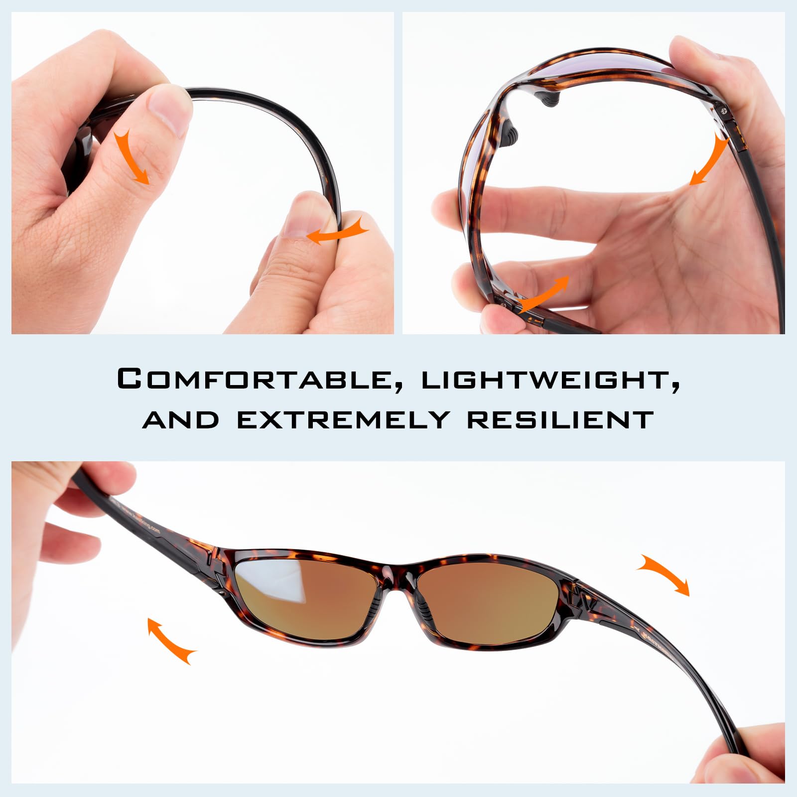 - KEY FEATURES - Polarized lenses reduce glare - Impact resistant TAC lenses protect your eyes from flying objects - Lightweight, durable, and comfortable Grilamid frames β Anti-slip nose and temple pads - Block 100% of the harmful UVA and UVB rays