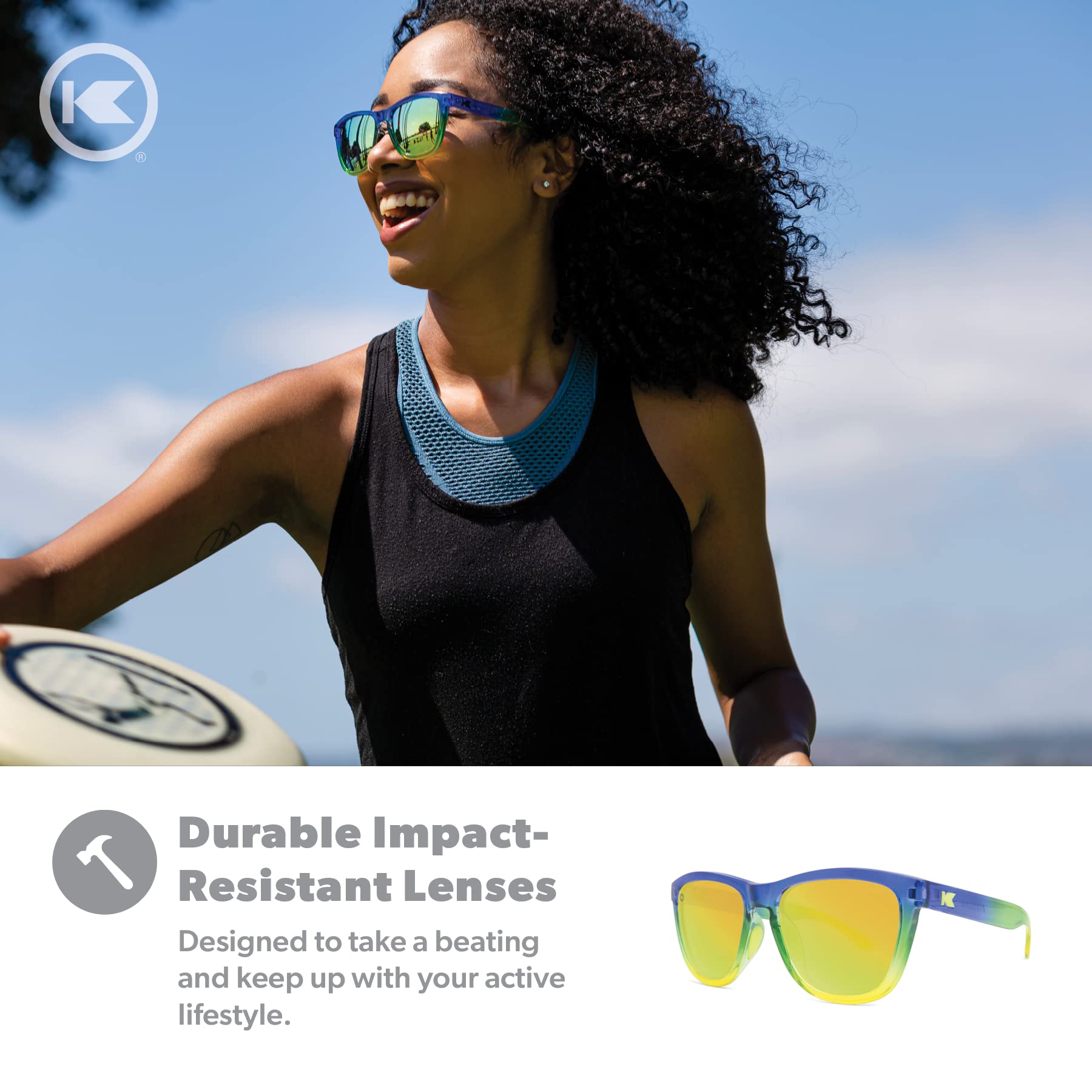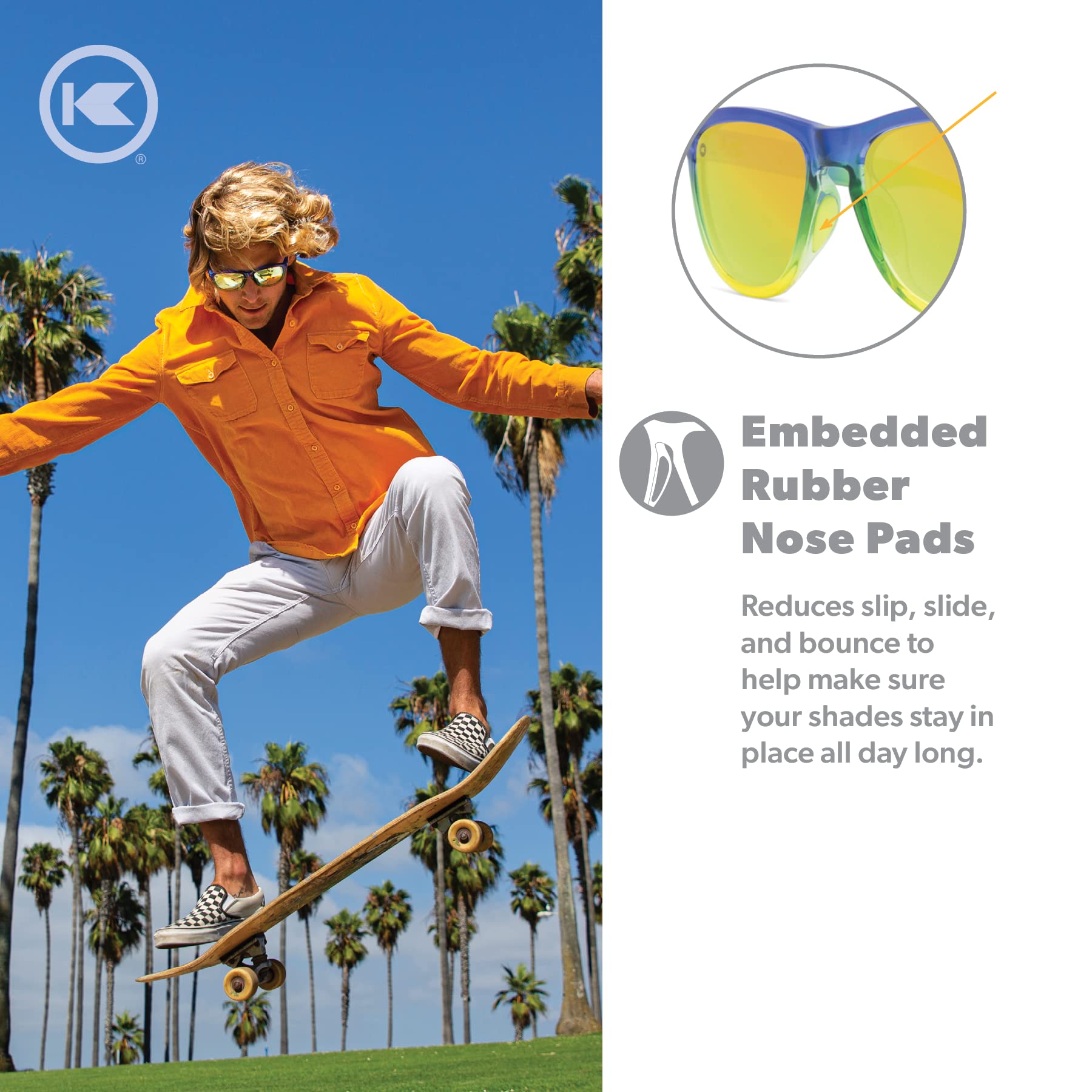 • For Any Outdoor Adventure: The Knockaround Premiums feature embedded rubber nose pads to stop the running sunglasses from slipping and sliding, while the impact resistant lenses provide your eyes with all the protection they need.