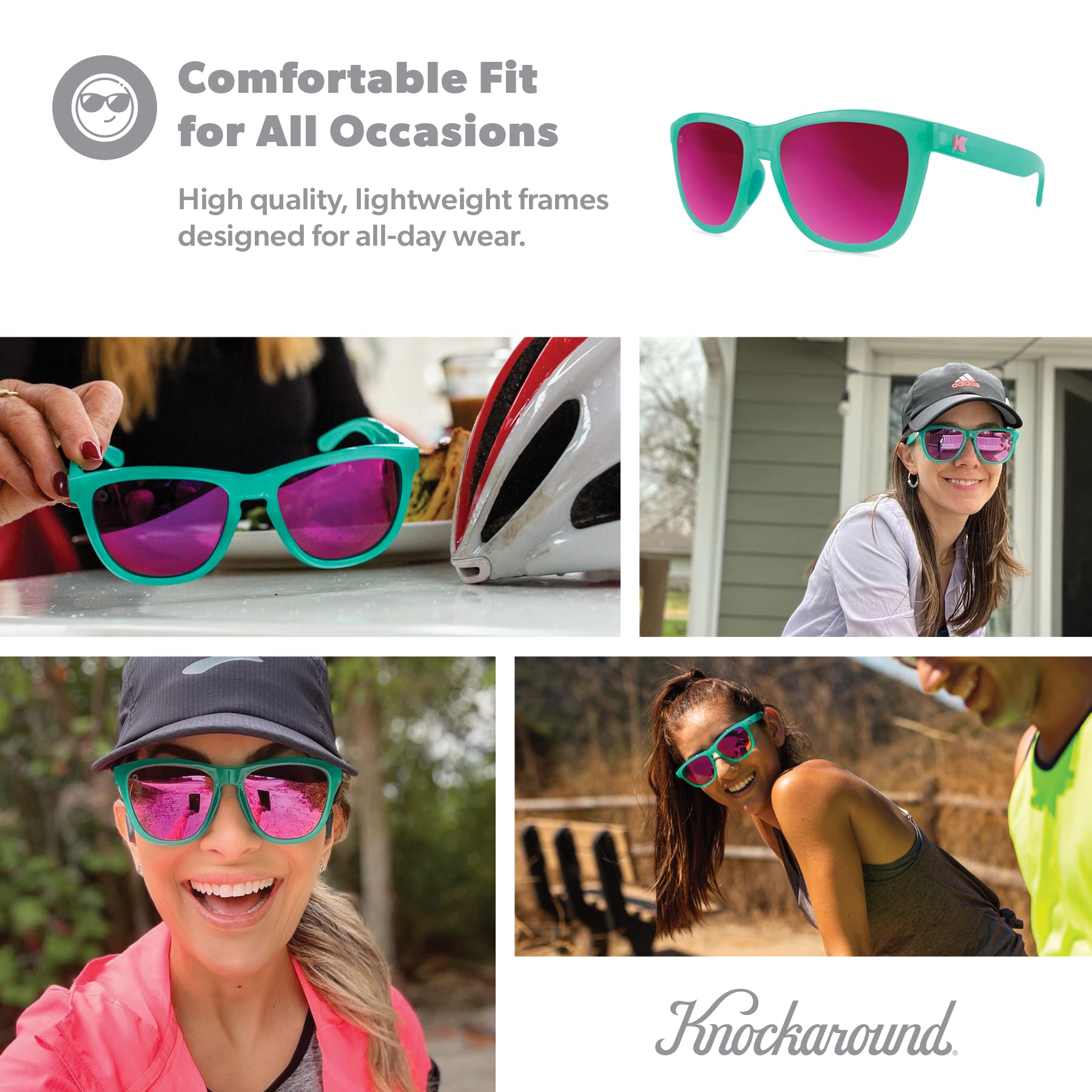 • For Any Outdoor Adventure: The Knockaround Premiums feature embedded rubber nose pads to stop the running sunglasses from slipping and sliding, while the impact resistant lenses provide your eyes with all the protection they need.