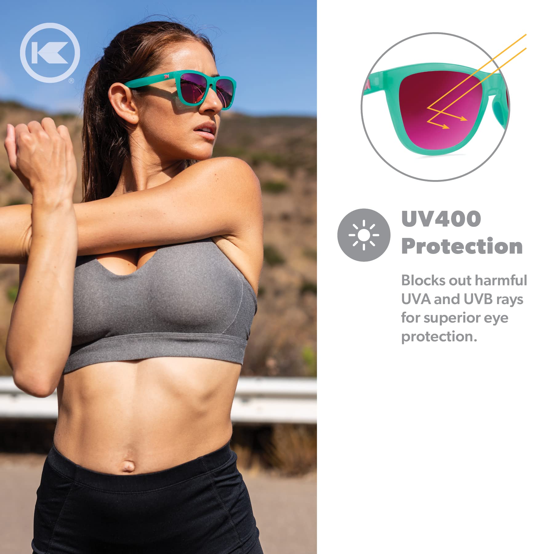 Knockaround Premiums Sport - Polarized Running Sunglasses for Women & Men - Impact Resistant Lenses & Full UV400 Protection, Glossy Green Frame/Pink Reflective Lenses
