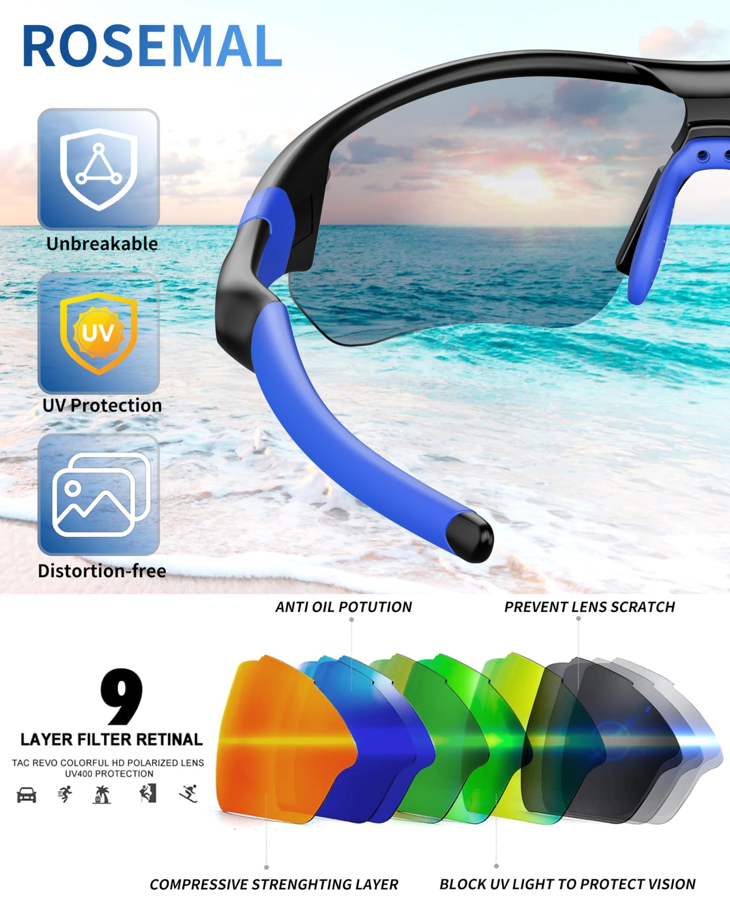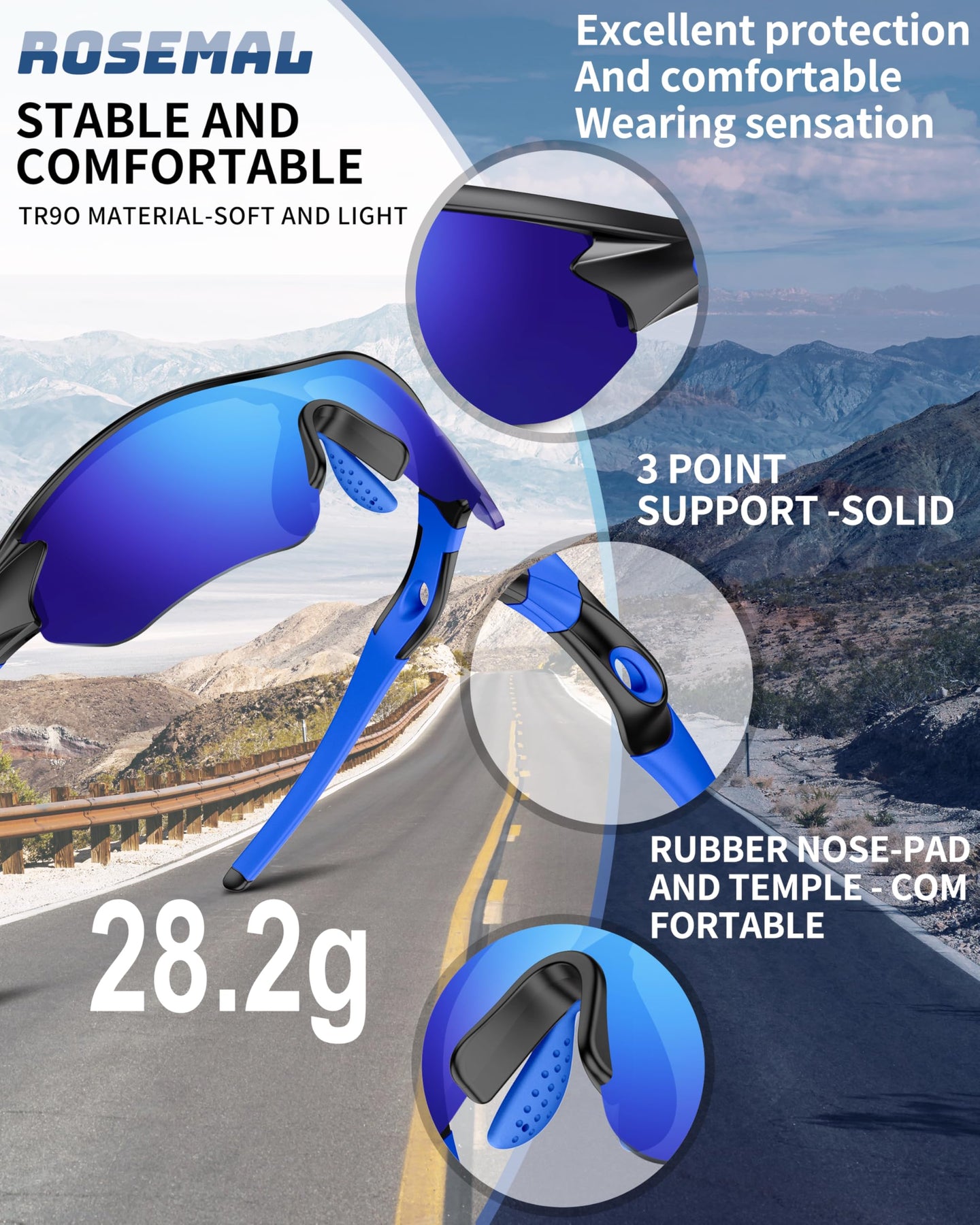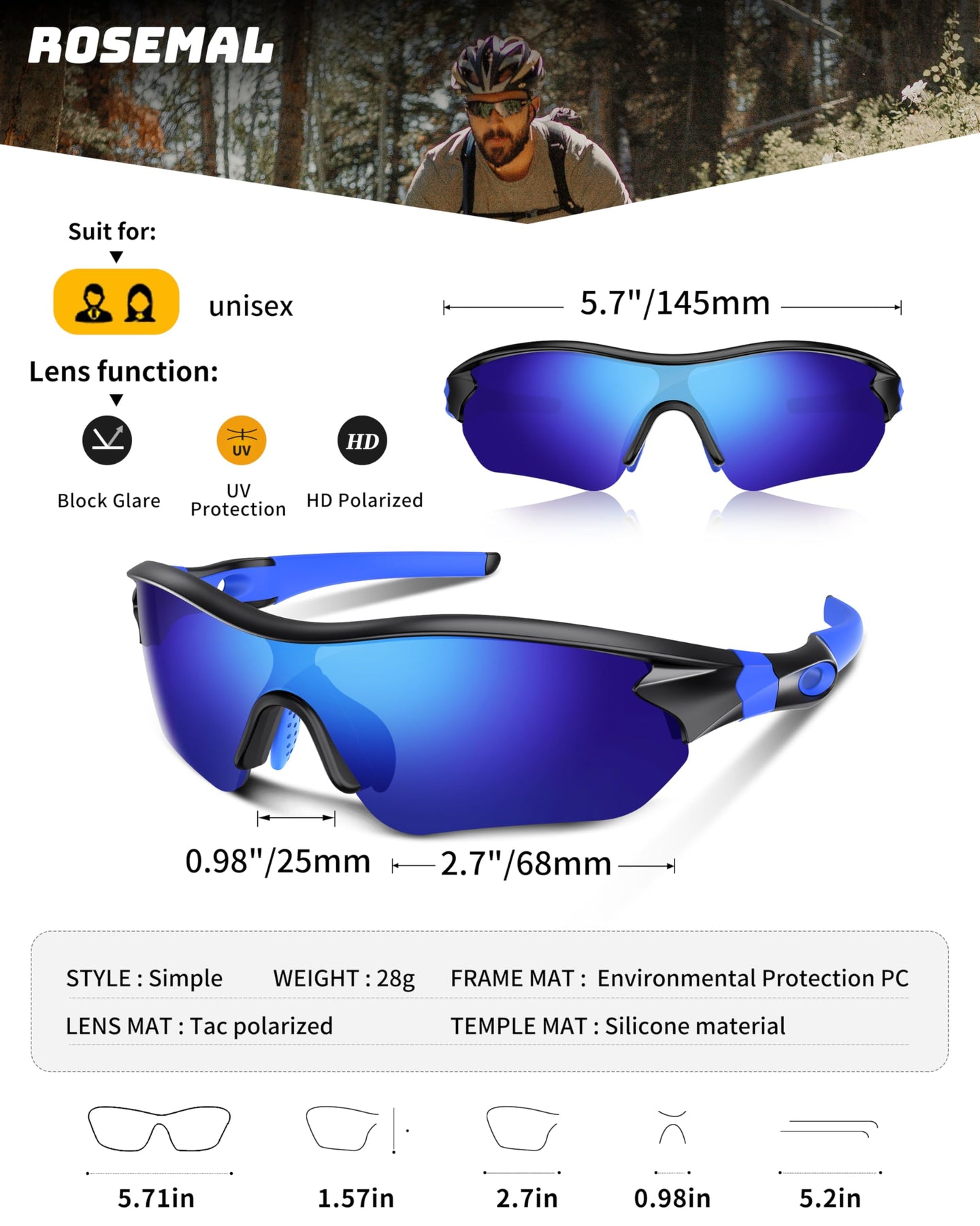 - LIFETIME WARRANTY - Frames and lenses are unbreakable for no risk purchasing. If something wrong with our sports sunglasses, contact Rosemal eyewear experts without hesitation to solve the problem until satisfaction.