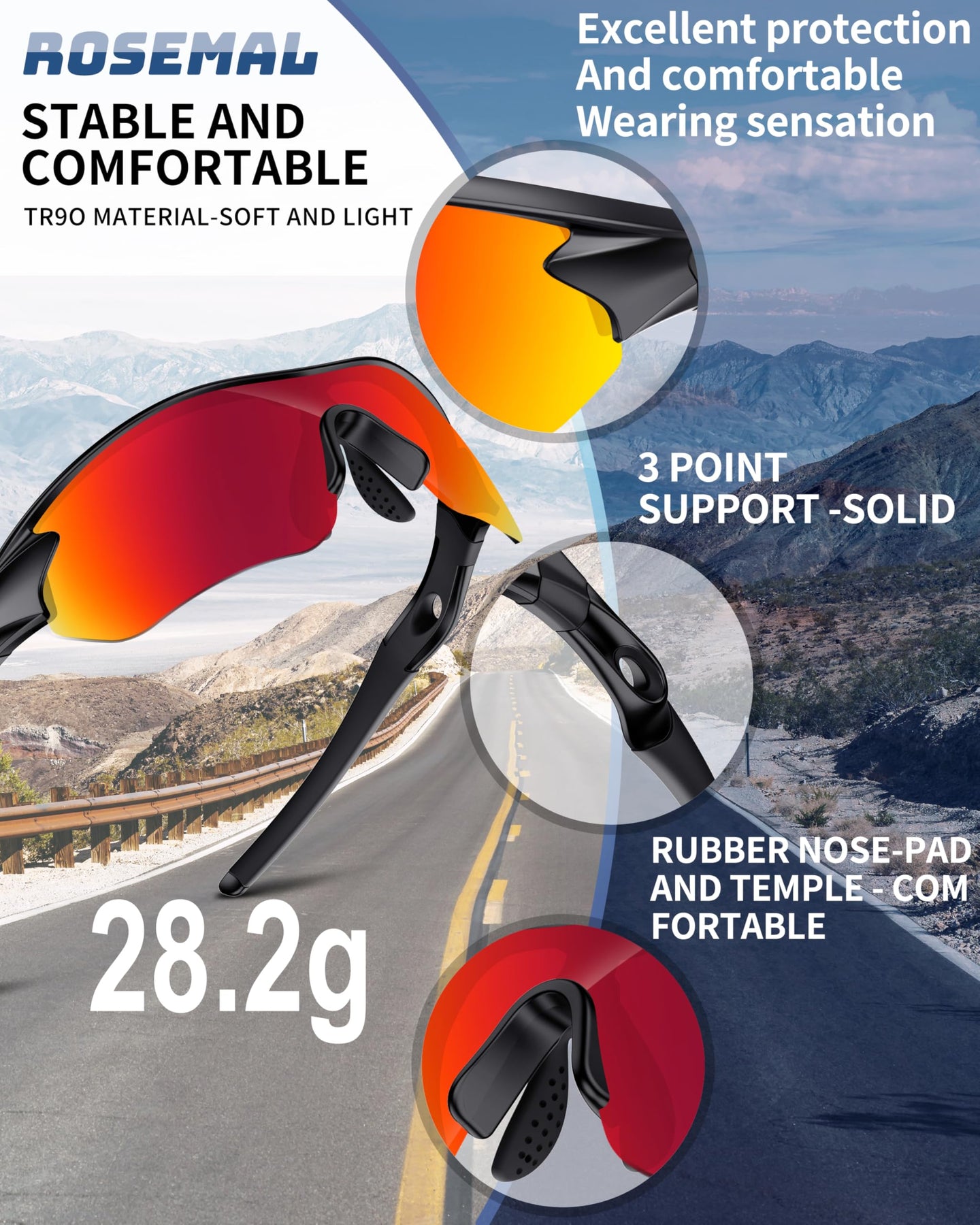- LIFETIME WARRANTY - Frames and lenses are unbreakable for no risk purchasing. If something wrong with our sports sunglasses, contact Rosemal eyewear experts without hesitation to solve the problem until satisfaction.