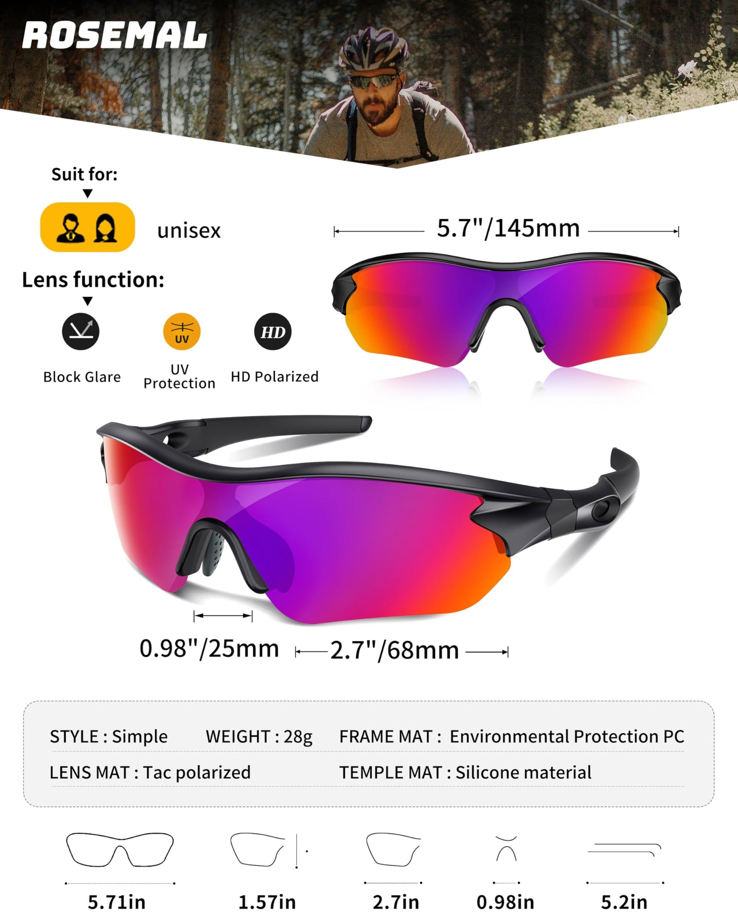 - LIFETIME WARRANTY - Frames and lenses are unbreakable for no risk purchasing. If something wrong with our sports sunglasses, contact Rosemal eyewear experts without hesitation to solve the problem until satisfaction.