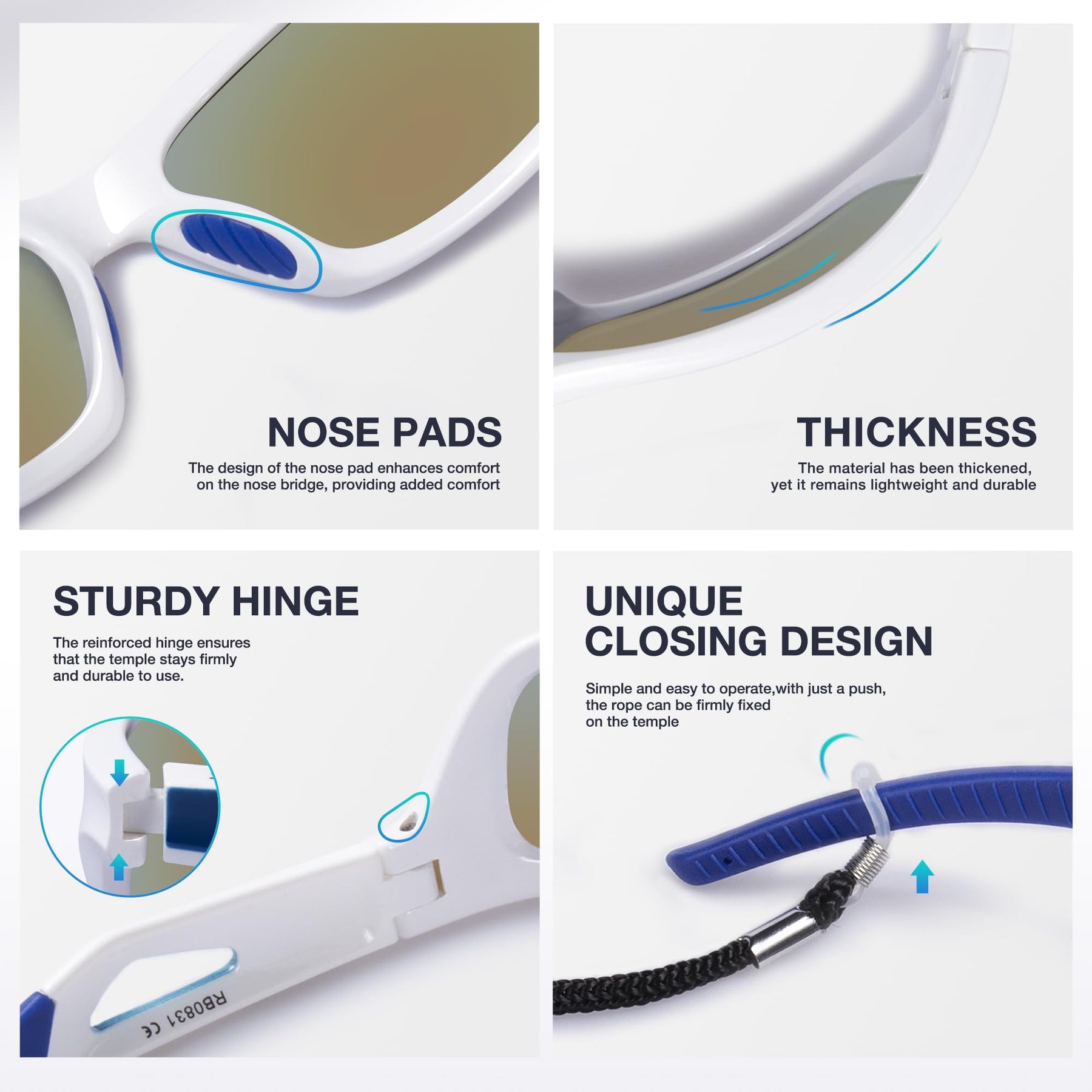 Details: RIVBOS Sport Sunglasses Are Designed for Driving, Cycling and all Outdoor Activities. Lens Made of Shatterproof Unbreakable PC Material are Durable Enough for Long Time Using Only The Main Black Lens is Polarized Lenses Against Strong Sunlight, the Other 4 Lens are Colored Sunglasses for Different Environmental Condition. Come With an Elastic Sport Belt Which You can Interchange it As and When You Like it to be Strap or Bow. More Comfortable With Spare Rimmed Soft Rubber Pad. Nice, Trendy and Cool to Wear. a. TAC Polarized Lens- Offer Top UV Protection filtering 100% of all UVA/UVB/UVC and Harmful Blue Light Up to 400nm. Restore true color, eliminate reflected light and scattered light and protect eyes perfectly. The lens of RIVBOS Polarized Sunglasses reduce glare reflected at some angles off shiny non-metallic surfaces such as water. They allow wearers to see into water when only surface glare would otherwise be seen, and eliminate glare from a road surface when driving into the sun. It’s good to wear our sunglasses while u driving finishing and all kind of outdoor sport activities. b. Super Lightweight, Stylish, Durable-Lightweight design is ideal for usage by motorcycle and cycling, bicycle , driving, running, fishing, racing, skiing, climbing, trekking or other outdoor activities enthusiasts. Fashion and stylish sporty design, with rich colour combinations of frames and lens. c. Package Accessories: Each RIVBOS Sunglasses are Packed in Hard Protection Portable Case and Colour Box, Pouch/Strap/Cleaning Cloth ect. included. d. Lifetime Breakage On Frame & Lens - Frames and lens are unbreakable for no risk purchasing. In case any broken problem happens, contact the seller of RIVBOS without hesitation to solve the problem until satisfaction.