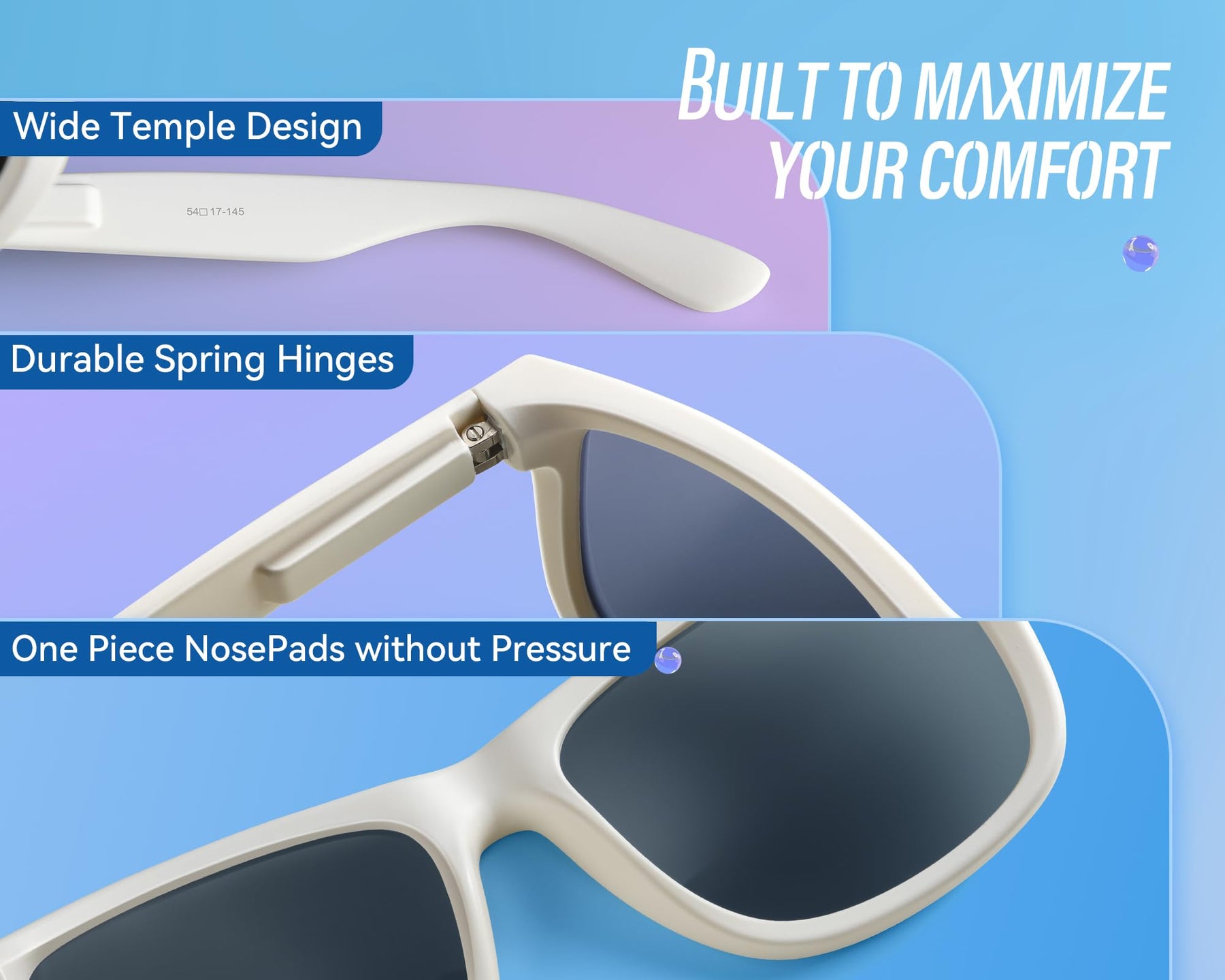 Details: HD Polarized Lens: Comparing with normal HD Polarized lens, our polarized sunglasses can filter out reflected glare without haze or optical distortion. Our polarized sunglasses provide a high clarity vision in front of you to see clearly and more comfortably. 100% UV400 Lens: VELAZZIO sunglasses can effectively blocking harmful UVA, UVB & UVC rays. They can protect your eyes when you driving, fishing, cycling or enjoy the sunshine. Comfortable to Wear: We committed to bring you the comfortable wearing experience. Ultra light one-piece nose pads makes you feel light on your face, enhancing your wearing comfort even for long time.