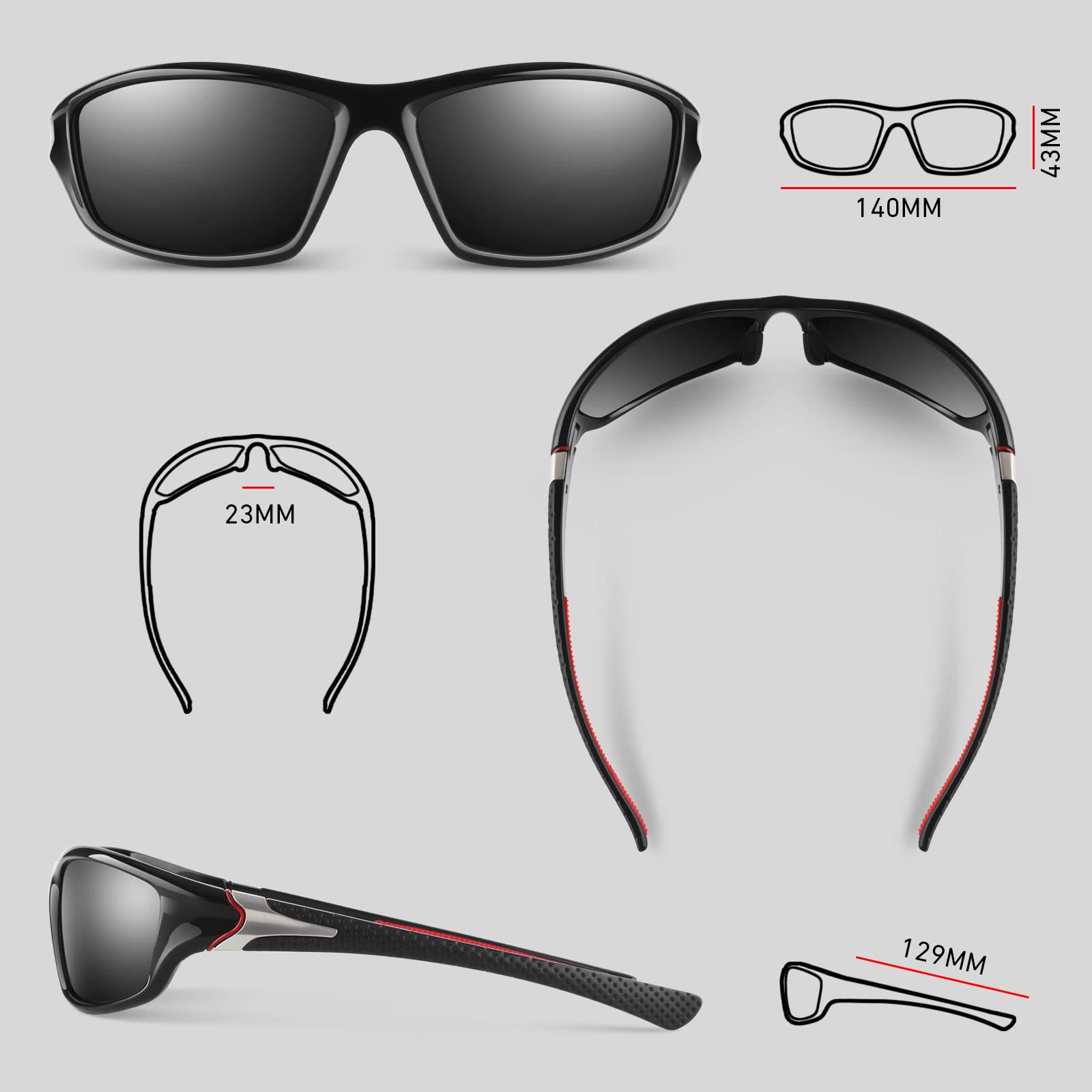 - š“āWRAP DESIGN & ULTRA LIGHT FRAMEāŗ8-Base wrap design perfectly shield your eyes from wind & dust and help you stay fully focused during your favorite activity.These sunglasses frames are strong but lightweight,you can hardly feel them on daily outdoor activities.