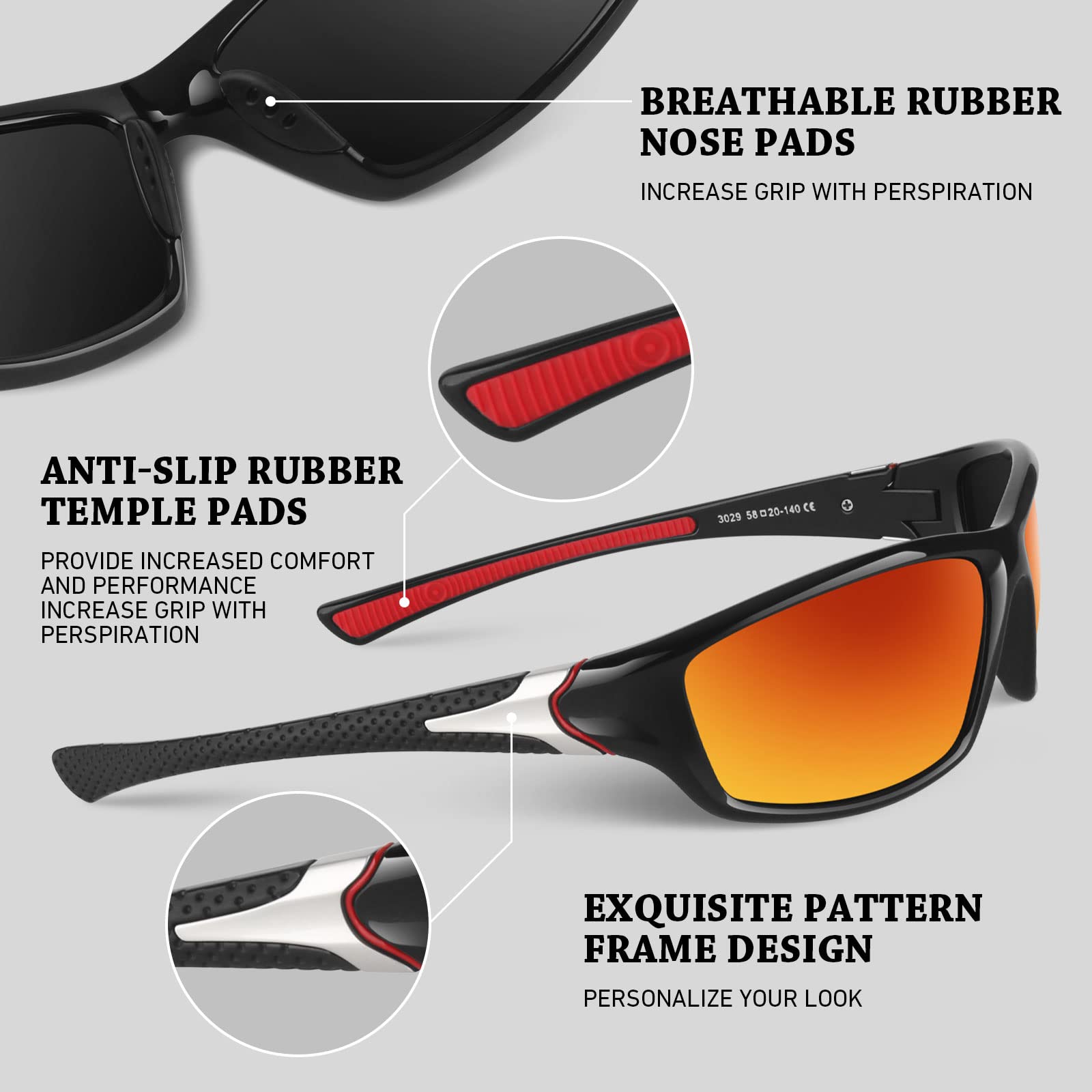 - š“āWRAP DESIGN & ULTRA LIGHT FRAMEāŗ8-Base wrap design perfectly shield your eyes from wind & dust and help you stay fully focused during your favorite activity.These sunglasses frames are strong but lightweight,you can hardly feel them on daily outdoor activities.
