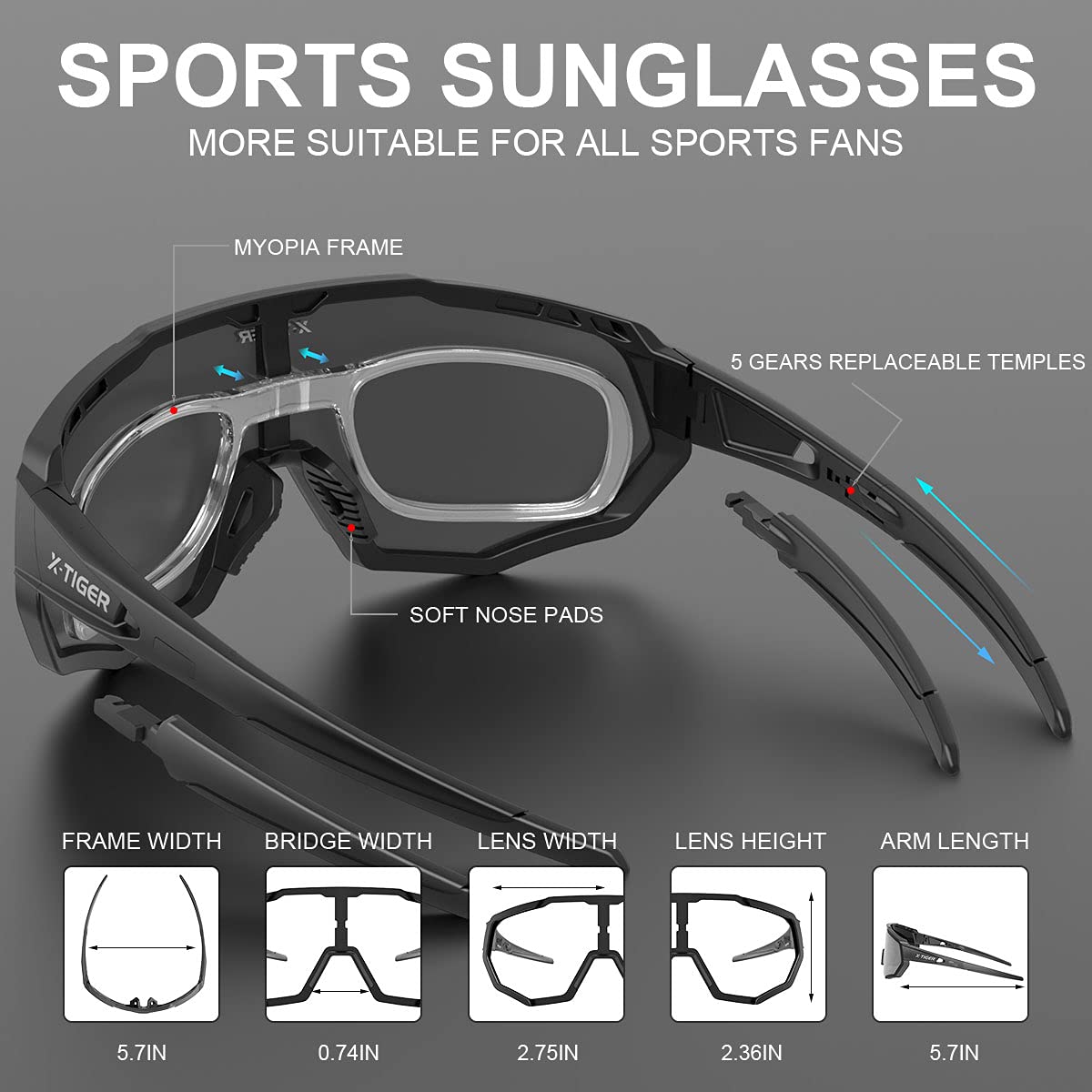 - Lightweight Design:Ultralight Frame Weight only 19.2g. you will forget you are wearing them in the middle of an adventure you cannot let heavy sunglasses weigh you down .X-TIGER Sports Polarized Sunglasses are ideal for usage by motorcycle ,cycling, driving, running, baseball,fishing, racing, golf,skiing and climbing, trekking or other outdoor activities enthusiasts.Inner frame can be used for shortsighted lenses.