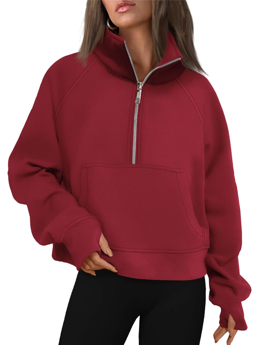 AUTOMET Womens Sweatshirts Half Zip Cropped Pullover Fleece Quarter Zipper Hoodies 2024 Fall Fashion Outfits Clothes Thumb Hole Red