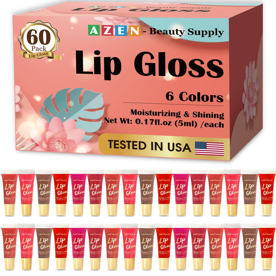 AZEN 60 Pack Lip Gloss Set, Lip Oil for Dry Cracked Lips Moisturizing Hydrating Nourishing with Vitamin E