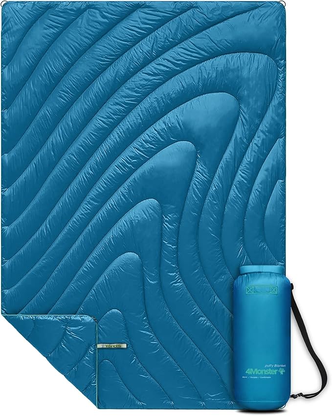 4Monster Double Puffy Camping Blanket - Extra Puffy Outdoor Blanket, Portable, Lightweight and Warm,Insulated Camping Quilt for Outdoors, Travel, Stadium, Festivals, Beach, Hammock