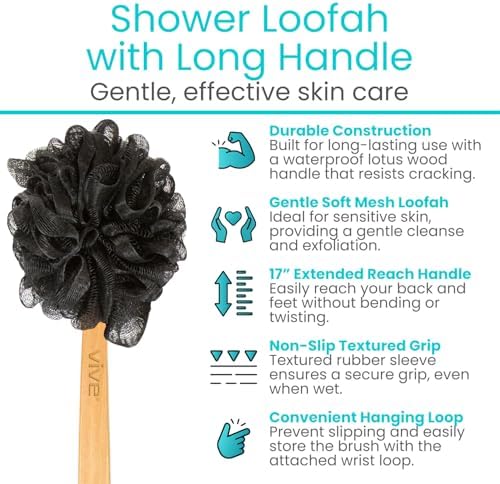 - EFFECTIVELY CLEANSE SENSITIVE SKIN: Create an at-home spa experience with the soft mesh loofah brush. Gently cleanses the most sensitive skin, improving circulation and skin health. Convenient for hanging to dry, the cord loop attached to the brush handle is also large enough to slide on your wrist to prevent dropping the brush while showering. Use with your favorite gel, body wash or shampoo.