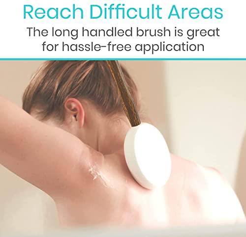 - EFFORTLESS SELF-APPLICATION: Get even coverage of lotions, creams, gels, and more with the Vive lotion applicator. It’s perfect for use on your back and feet. Say goodbye to awkward bending and twisting with its 17.5” handle and 3.5” applicator pad.