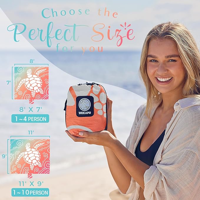 - Say goodbye to bulky sand pockets - WEKAPO beach blanket boasts a minimalist design, ditching cumbersome sand pockets for a sleek look. Four discreet corner pockets double as storage and anchor points. On breezy days, secure it easily with the included metal stakes for unwavering stability.