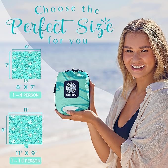 - Say goodbye to bulky sand pockets - WEKAPO beach blanket boasts a minimalist design, ditching cumbersome sand pockets for a sleek look. Four discreet corner pockets double as storage and anchor points. On breezy days, secure it easily with the included metal stakes for unwavering stability.