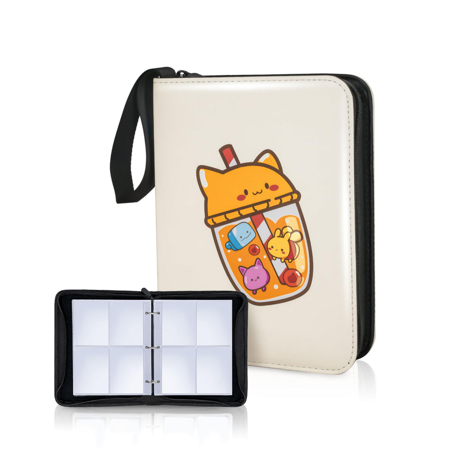 CLOVERCAT 4 Pocket Trading Card Binder Parent (4 Pocket, 400 Cards, Cartoon Sipper, White)