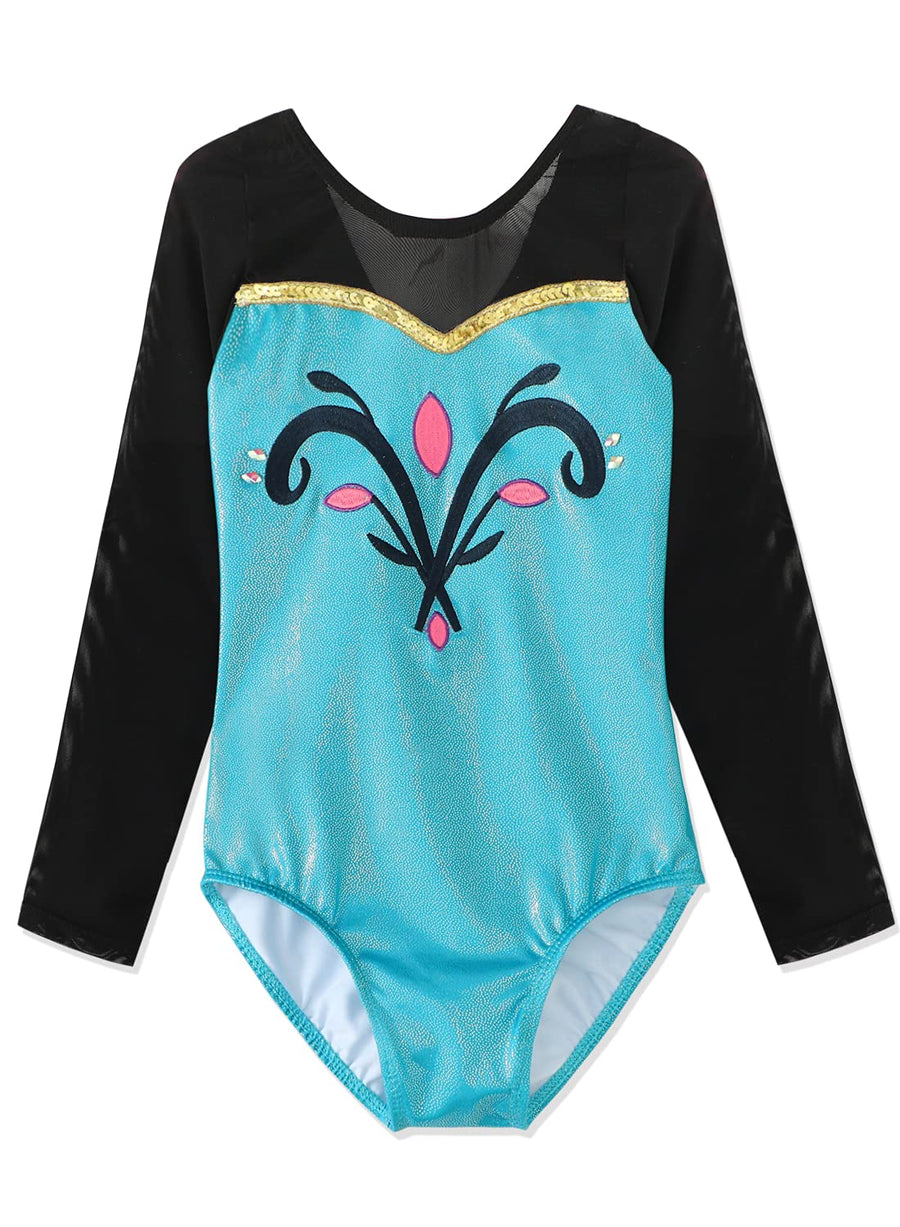 HOZIY Gymnastics Outfits for Girls 5-6 Long Sleeve Leotards for Kids Toddlers Black Lace Green Gold Sequins Sparkly Shiny Embroidered Flower Floral Embroidery