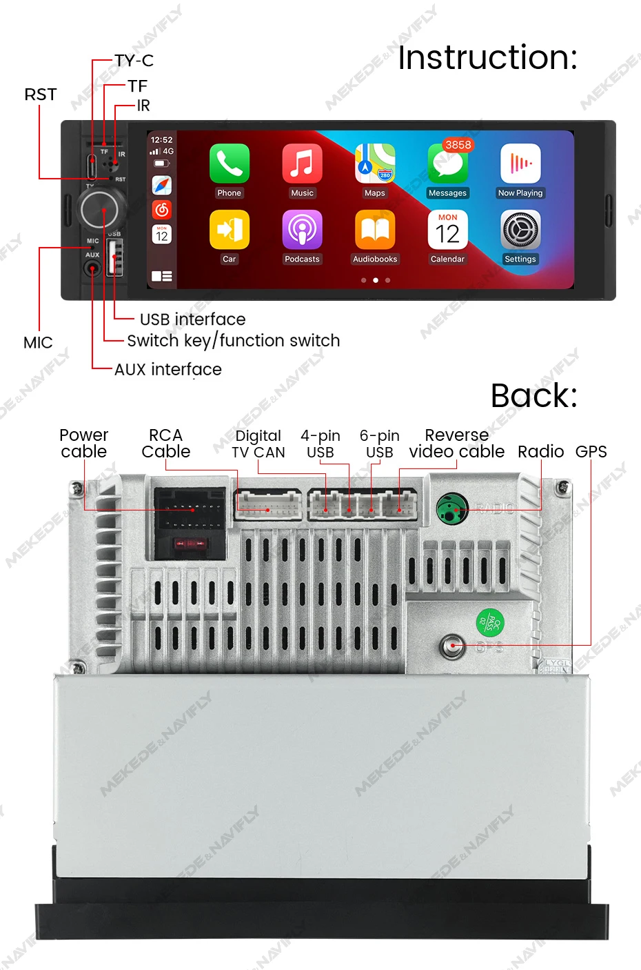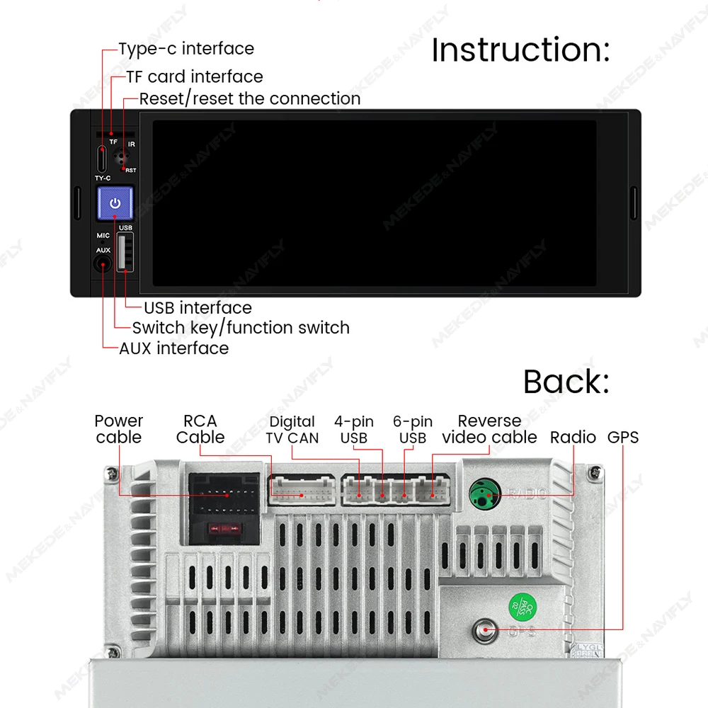 support: Wireless carplay/android auto,Reverse camera (optional camera),AUX input,USB/Type C,BT function