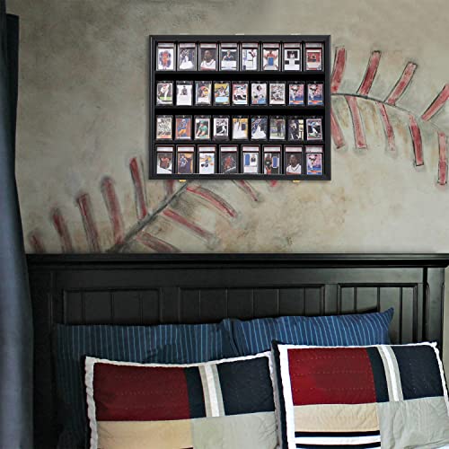 • BEST WAY TO SHOW OFF SPORT CARDS - Sport cards collection display case is made of wood with Anti-fade Matt Black finish, Shatter proof 92% transparency and 98% UV protection acrylic glass, velvet like felt lining along with gold plated anti-theft locks can well protect your cherished memorabilia or collectibles. The frame outer size is 24.25in X 30.5in X 2.1in, Compartment height is 5.4 inch, Interior depth is 1.1in. NOTE: Cards are not included. , (note: Cards are not included).