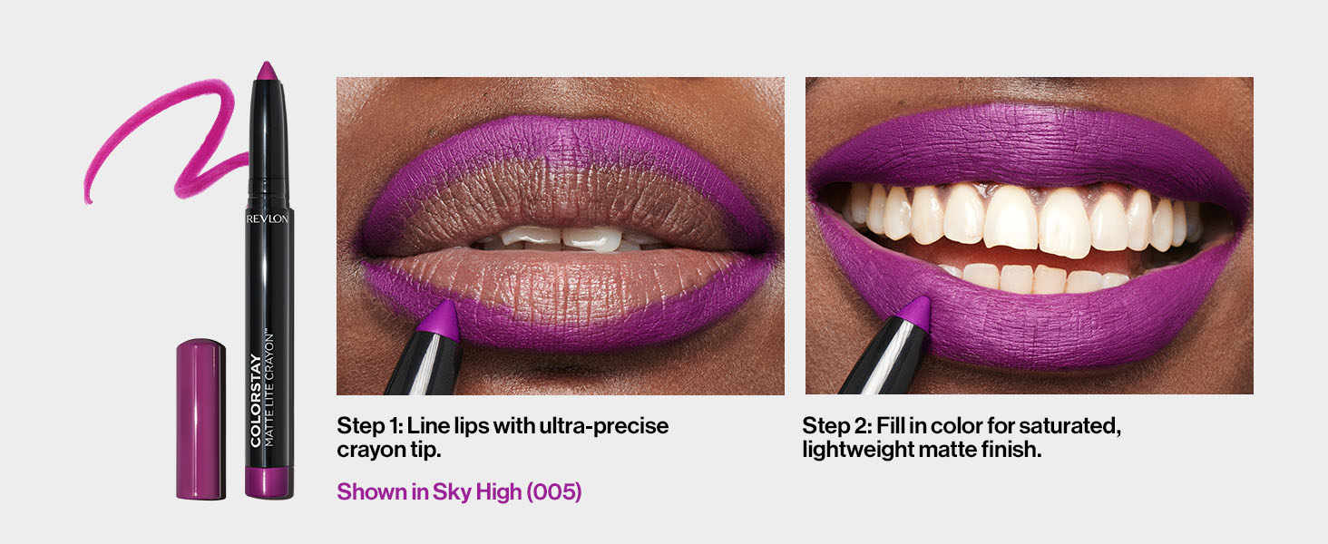 Revlon ColorStay Matte Lite Crayon™ is an effortless crayon lipstick that is so lightweight you’ll forget it’s even on. It feels 30% lighter than your average lipstick, and it’s infused with antioxidant-rich Mango Seed Oil to replenish lips. Experience saturated, matte lipstick color in a comfortable, non-drying matte formula. Formulated without parabens or mineral oil. Smudge-proof, non-feathering, non-bleeding, flake-proof, water-resistant and non-fading. An ultra-precise tip with built-in sharpener makes it easy to apply on the fly. In 12 bold yet wearable lip makeup shades for color play all day.
