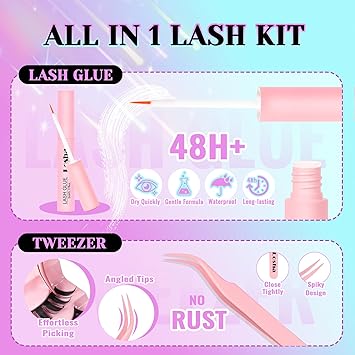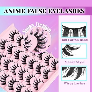 Losha Lashes Spiky Manga 14 Pairs Anime False Eyelashes 8D Wispy Eye Kit with Lash Glue and Tweezers Natural Soft Fake (Cutes)