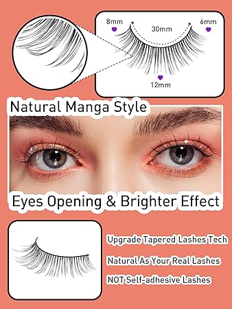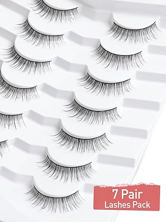 Natural Lashes Anime Eyelashes Wispy 12MM Strip Thin Band Manhua 3D Volume False 7 Pair Mink Korean Eye Pack Siligli