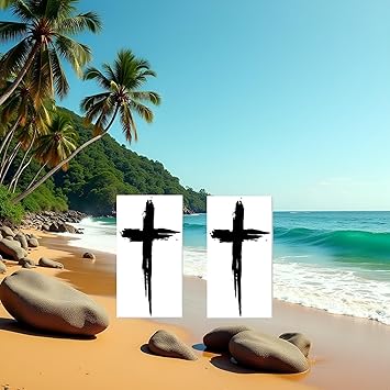 2Pcs Black Herbal Cross Temporary Tattoos - for Vivid Fake Body Art Stickers Men and Women | Waterproof Beach, Pool, Parties Holidays,Temporary Tattoo