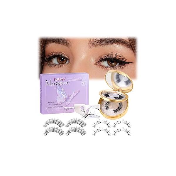 FADLASH Magnetic Eyelashes with Applicator 2 Pairs Lashes Reusable Natural Look Soft Magnet Eyelash Kit Easy to Wear (604+B1)