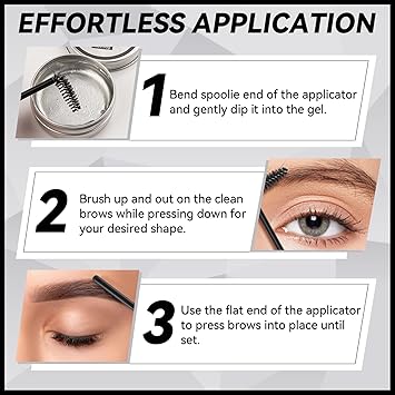 • 【Easy to Use】The package includes 1 x eye brow gel clear and 2 x brushes. The precision brush makes application easy and mess-free. Dip the angled brush into the brow freeze gel, and brush the gel through clean brows in upward motions, then use the end of the brush to press brows into place until set